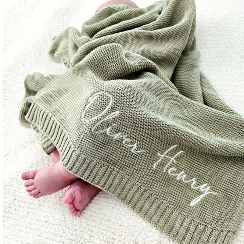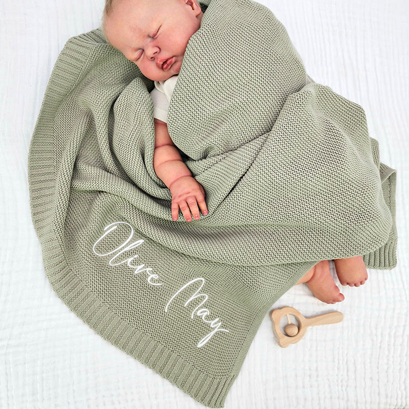 Personalized Baby Knitted Blanket with Embroidered Name Wonderful Gift for Newborn