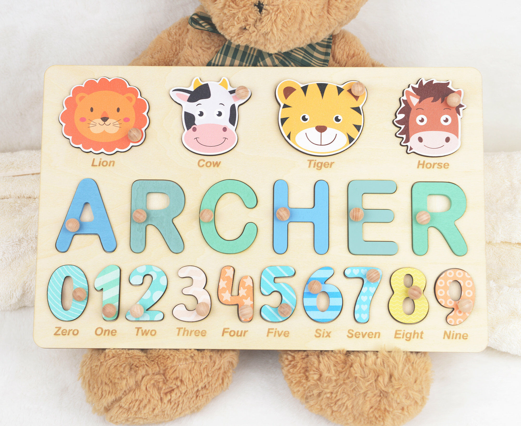 Personalized Baby Name Puzzle With Cute Animals And Number Icons To Develop Educational Toys
