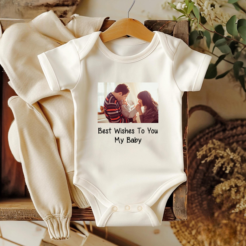Personalized Baby Onesie Custom Photo Best Wishes To My Baby Unique Warm Baby Shower New Mom Gift