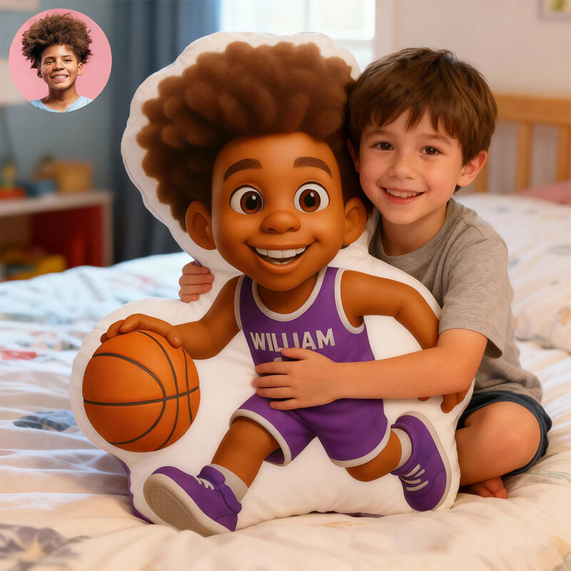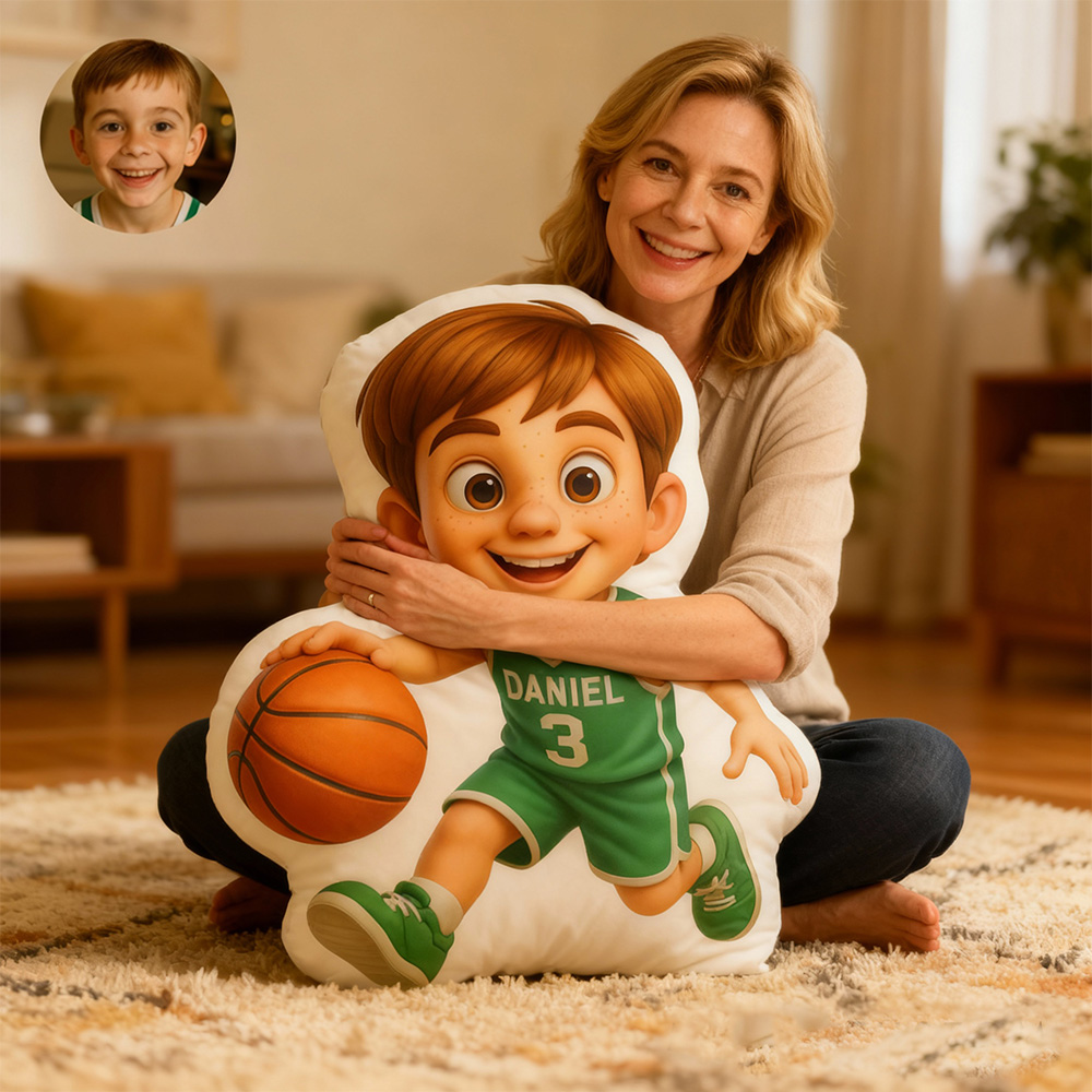 Personalized Basketball Player Pixar Style Pillow with Custom Name and Face Gift for Kids