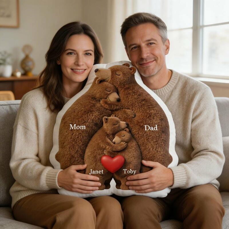 Personalized Bear Parents Pillow Cute "Bear Family" Pillow Cartoon Animal Pillow for Mom