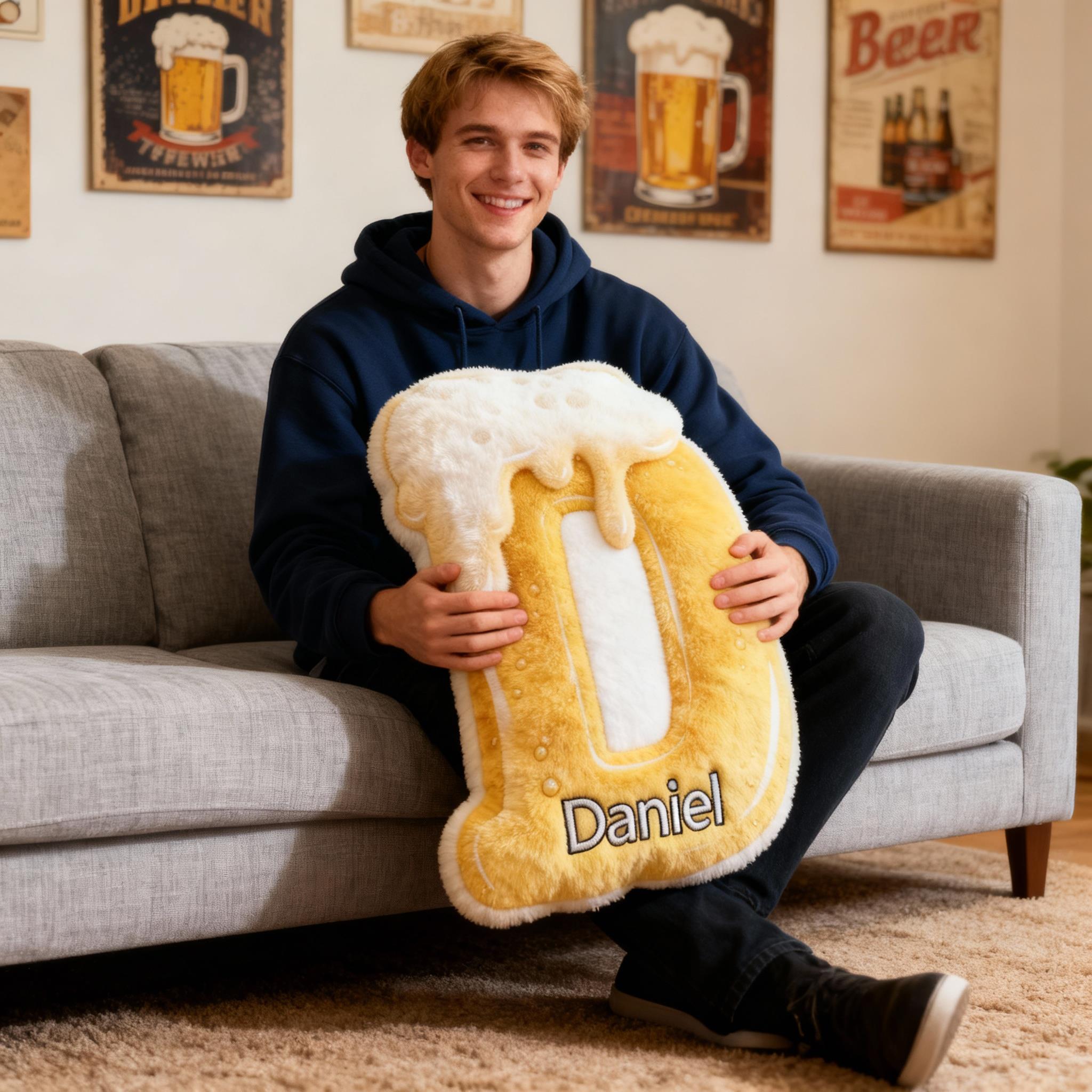 Personalized Beer-Themed Letter Pillows Customizable with Your Name Fun Gift for Beer Lovers