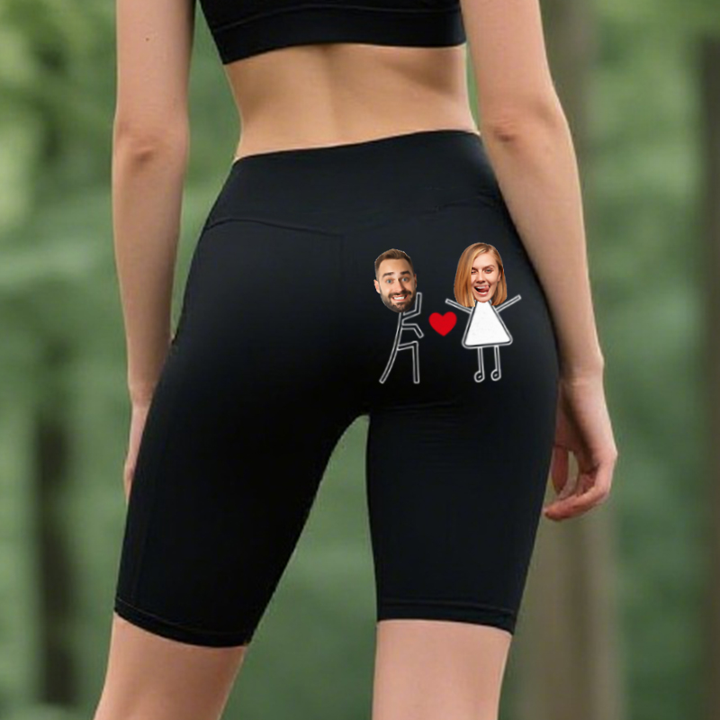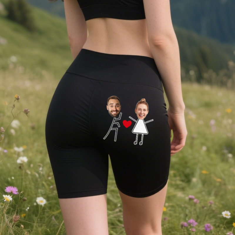 Personalized Biker Leggings Custom Couple Head Photo Love Launch Funny Design Gift for Her Lovers
