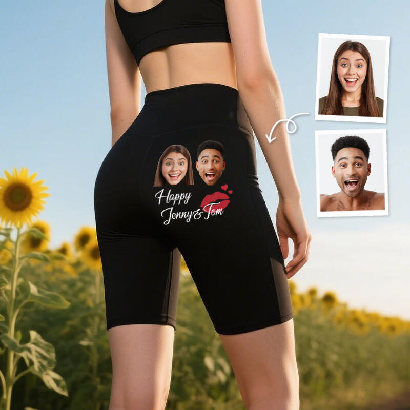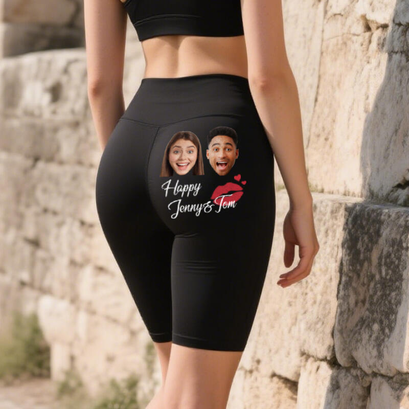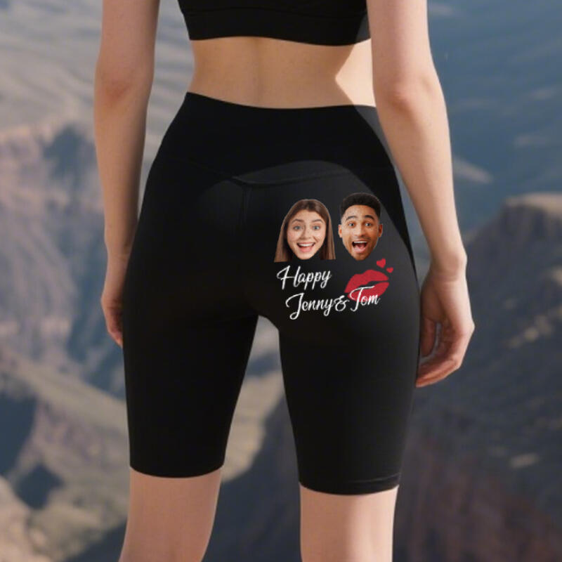 Personalized Biker Leggings Happy Couples Custom Photo Kiss Design Attractive Gift for Her Lovers