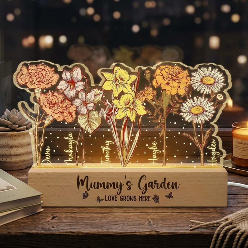 Personalized Birth Flowers Night Light Mommy's Garden Exquisite Gift for Mother's Day