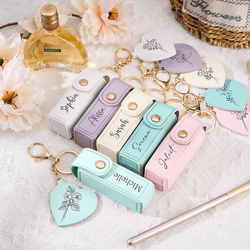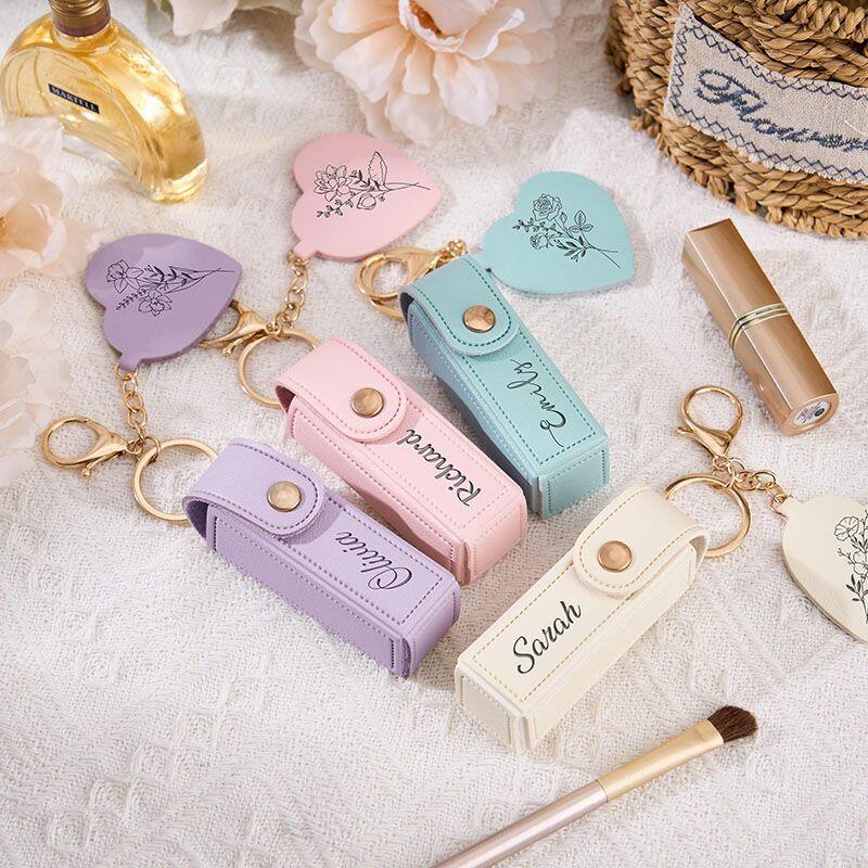 Personalized Birthday Flower Lipstick Case with Custom Name Beautiful Gift for Bestie
