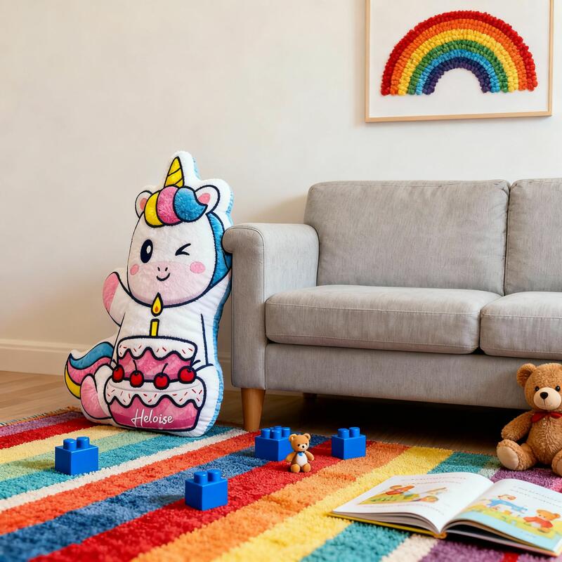 Personalized Birthday Unicorn Pillow Custom Name Cute Christmas Gift for Children