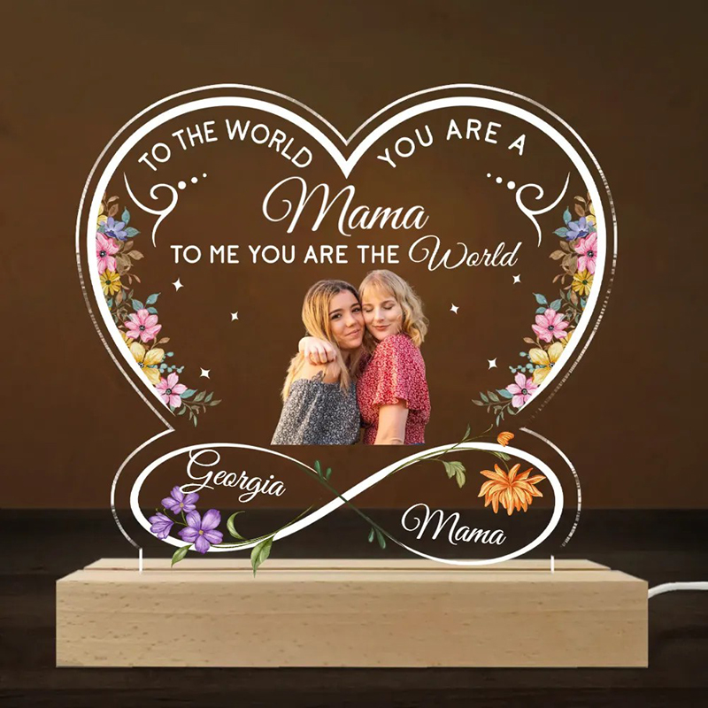 Personalized Birthflower Night Light with Custom Picture Beautiful Gift for Mommy