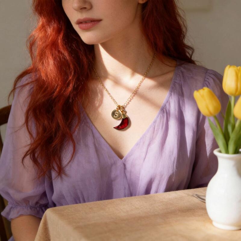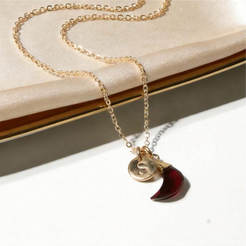Personalized Birthstone Necklace Add Letter Garnet Crescent Moon Necklace for Birthday
