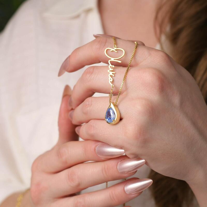 Personalized Birthstone Necklace With Name Gift For Birthday
