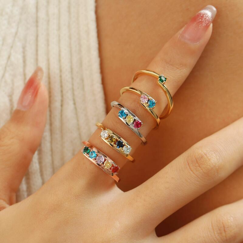 Personalized Birthstone Ring Set Exquisite Birthday Gift