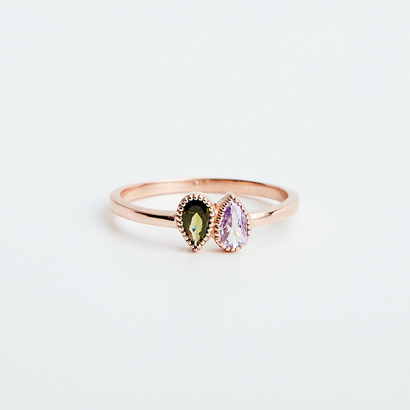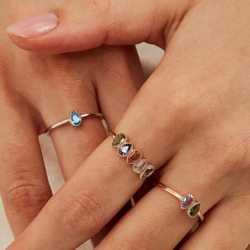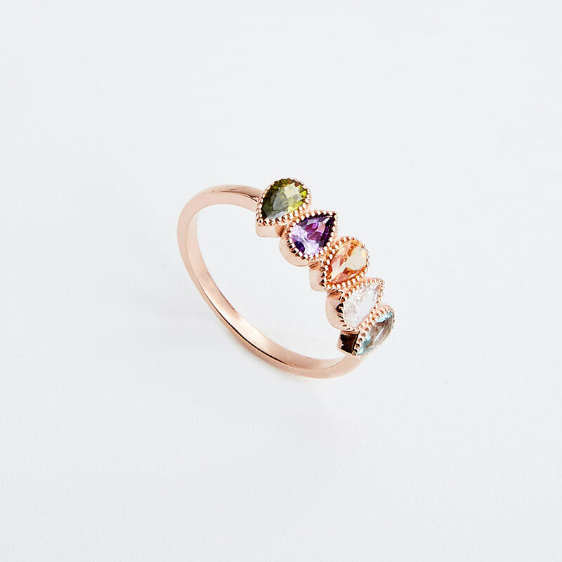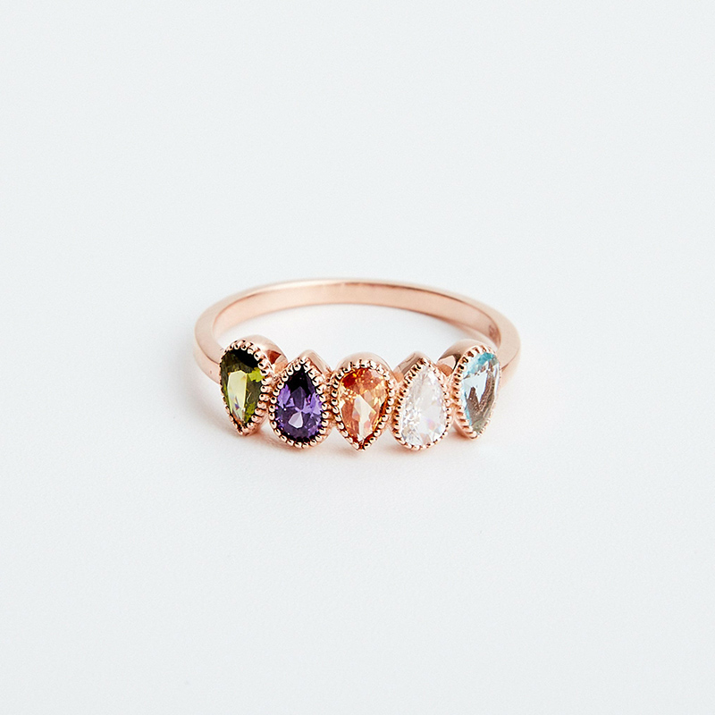 Personalized Birthstone Ring Water Drop Shaped Unique Gift for Birthday