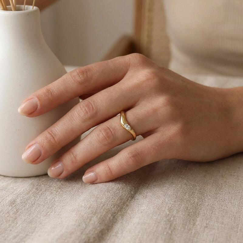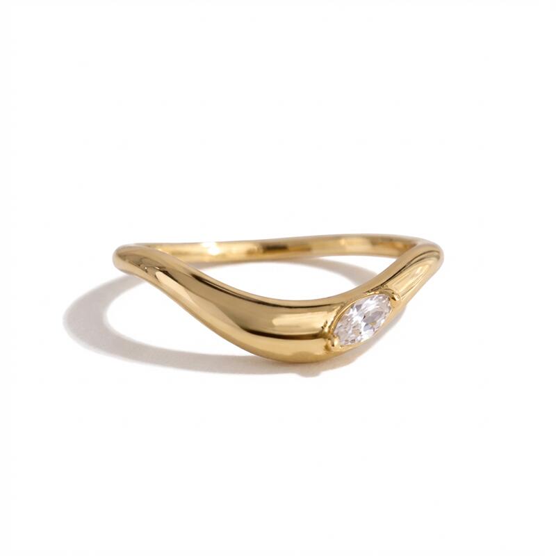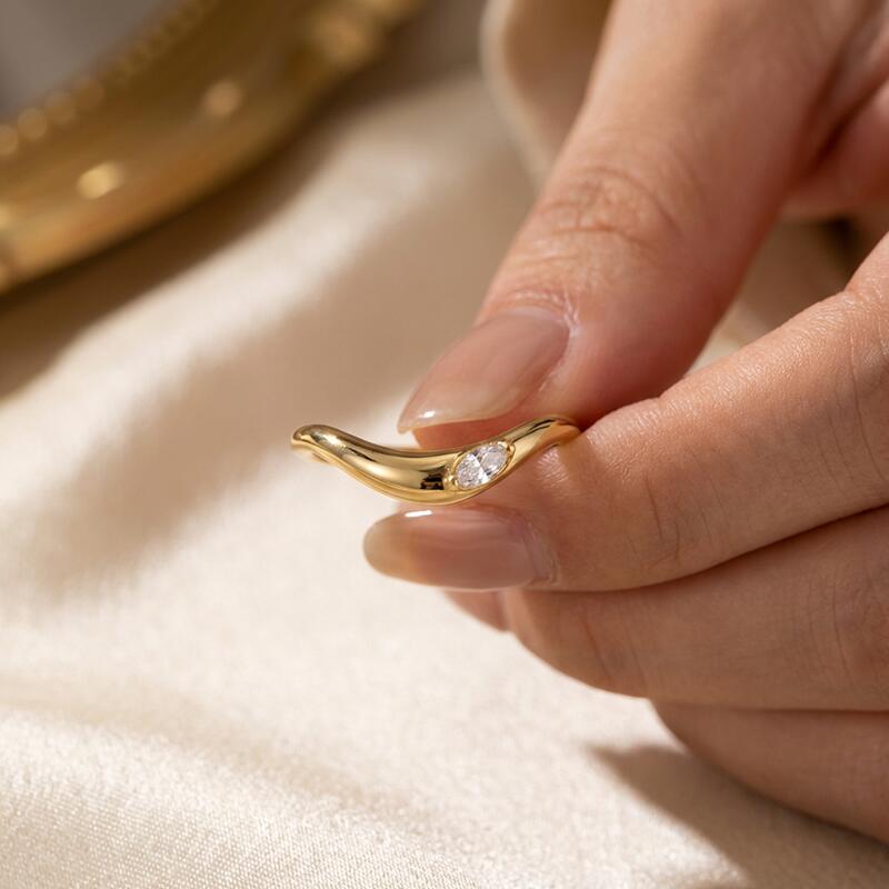 Personalized Birthstone Ring with Curved Design Stylish Gift for Friends