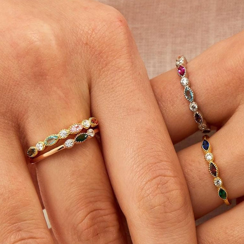 Personalized Birthstone Ring with Diamond Wonderful Gift for Mother