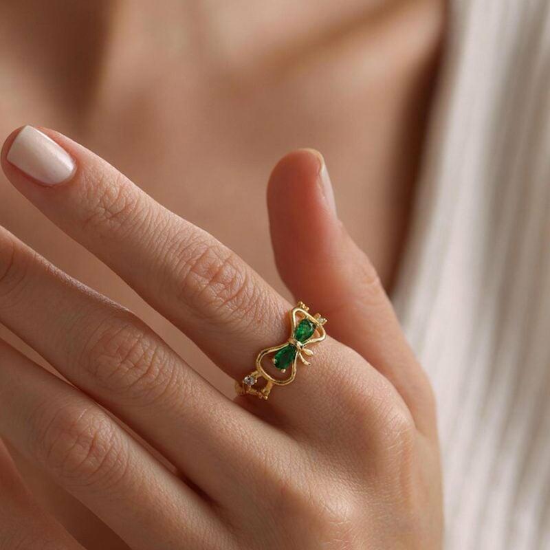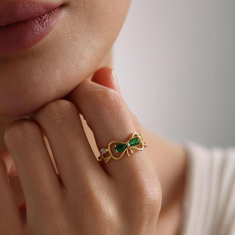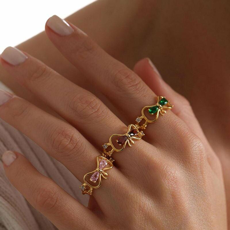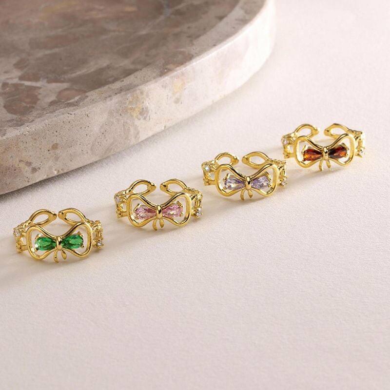 Personalized Bow Ring Custom Birthstone Cute Gift for Your Girlfriend