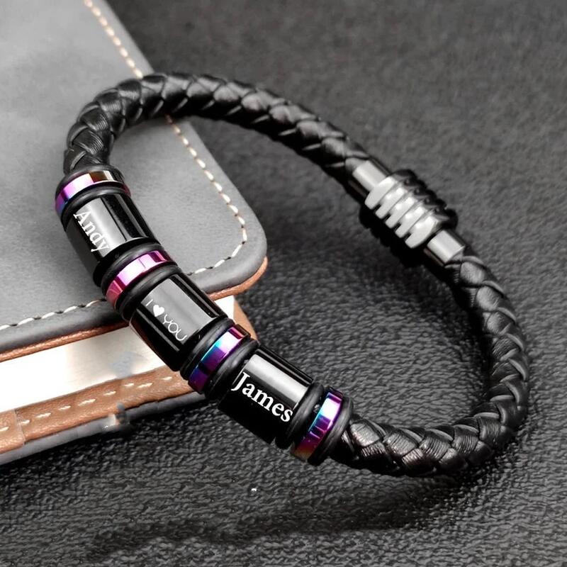 Our stunning braided leather and stainless steel bracelet for men makes a wonderful gift for boyfriends, fathers, and male friends, and is perfect for everyday wear. Excellent workmanship, high quality. Leather bracelets with stainless steel bars that can be engraved with names, sentences or photos. Men's bracelets are the perfect gift for Valentine's Day, Father's Day, Christmas and other important occasions.
