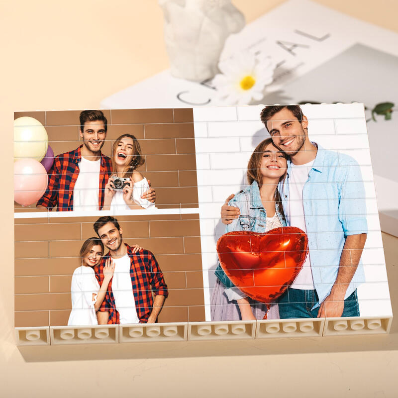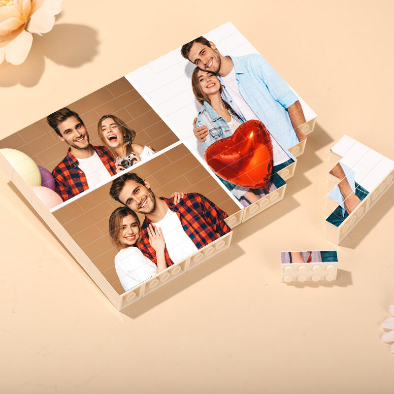 Personalized Building Block Puzzle Custom 3 Photos Brick Rectangle Valentine's Day Gift