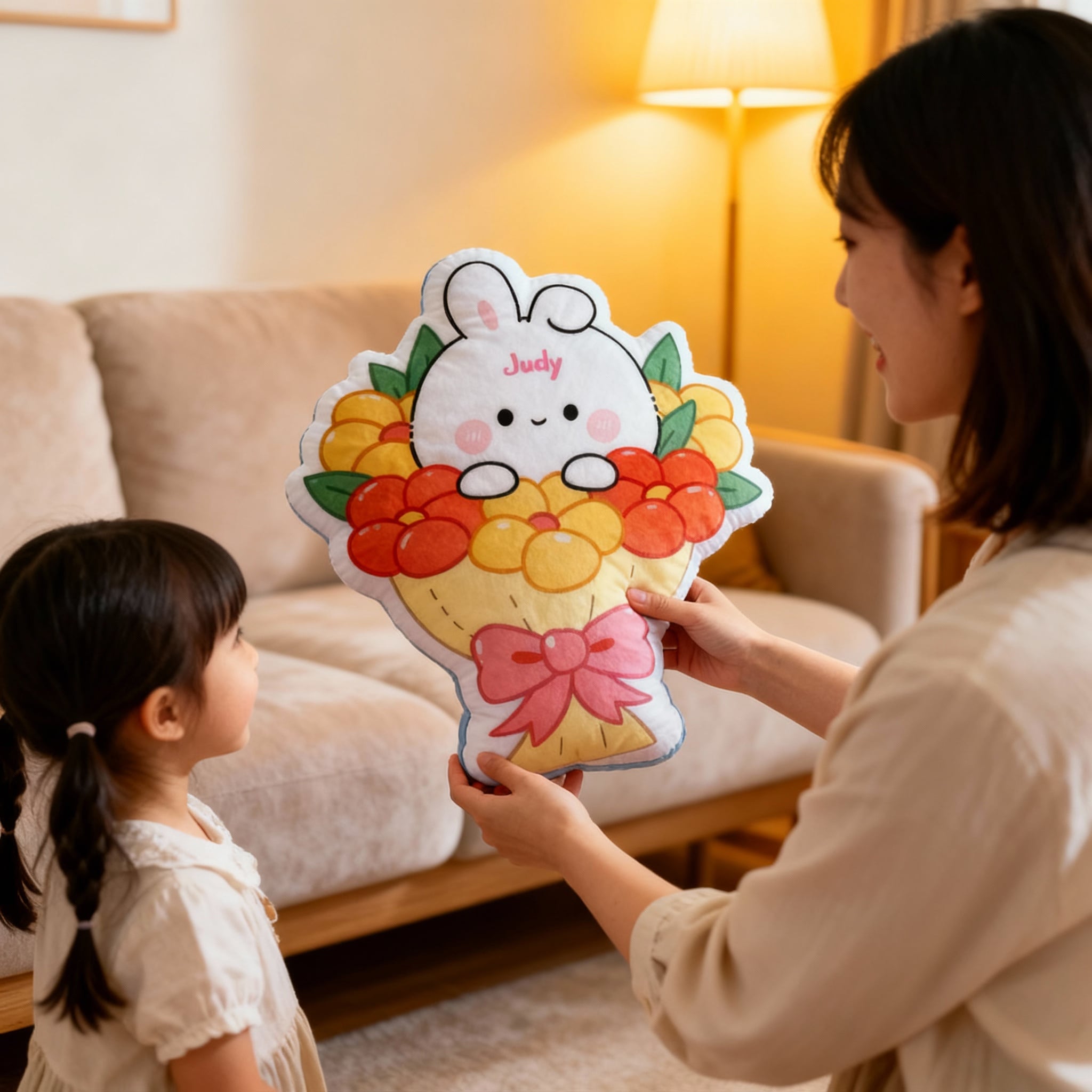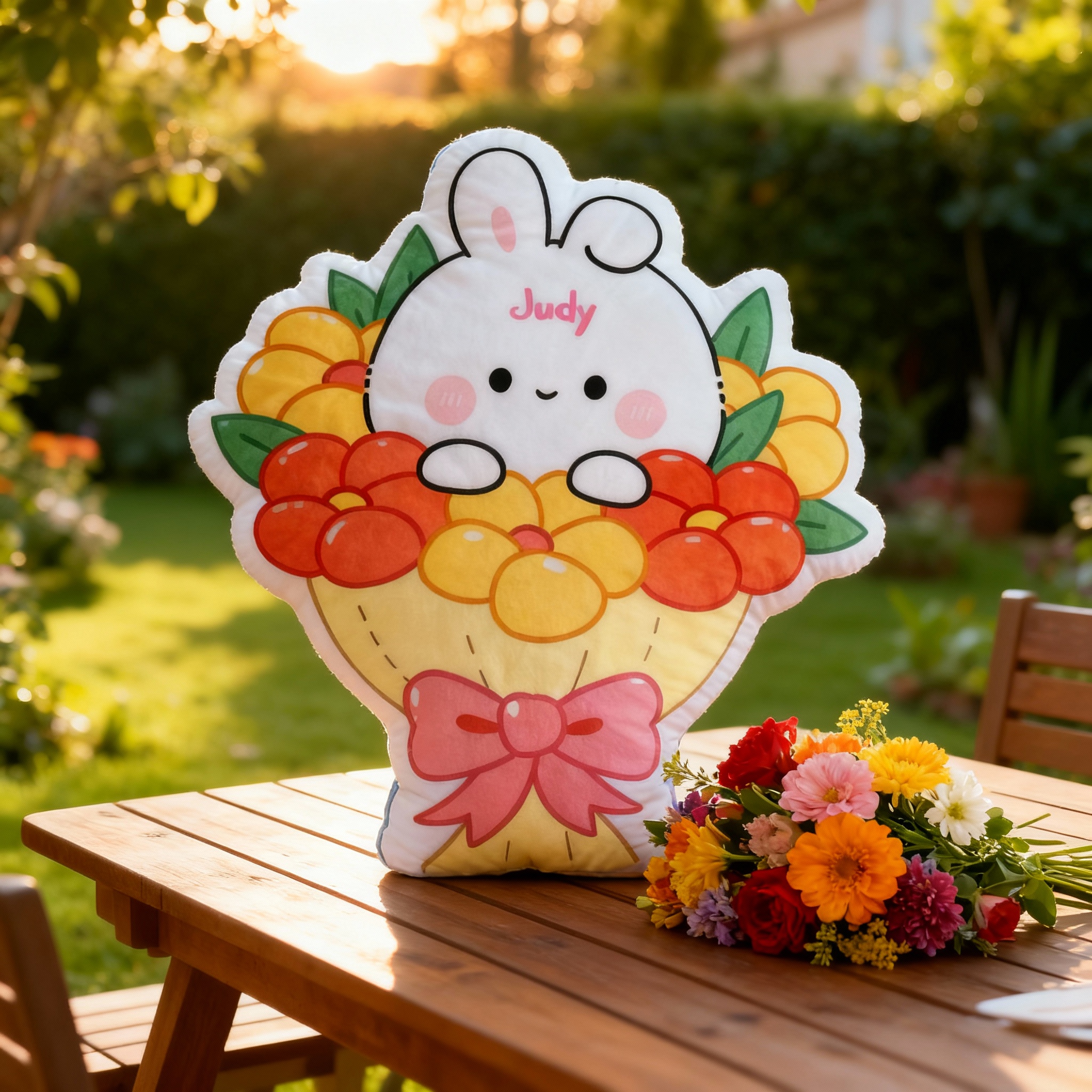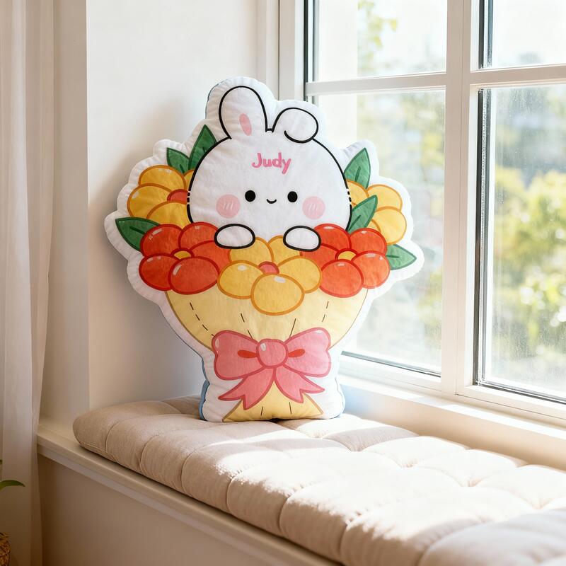 Personalized Bunny Bouquet Pillow with Customizable Name Cute Gift for Pet Lovers