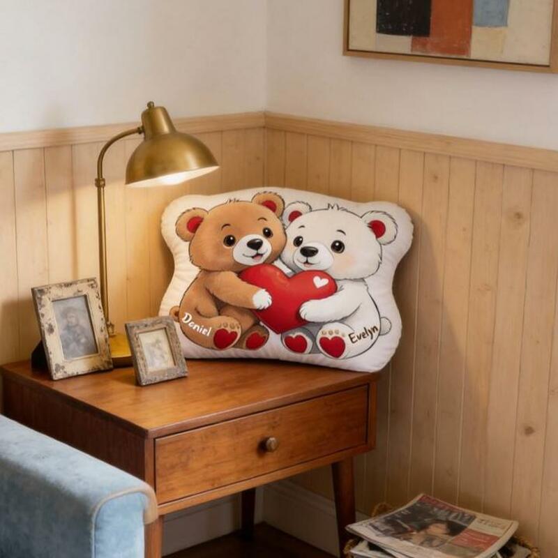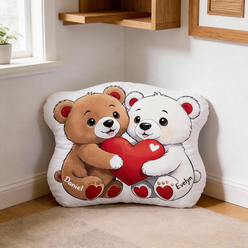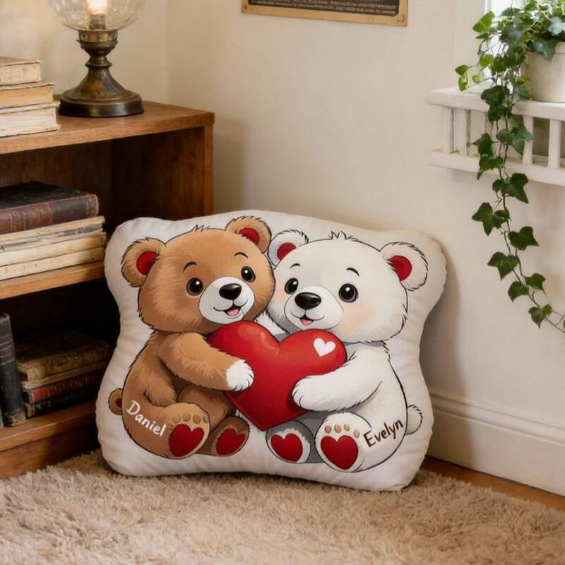 Personalized Cartoon Couple Bear Throw Pillows Bedside Decorations Valentine's Day Gift for Her