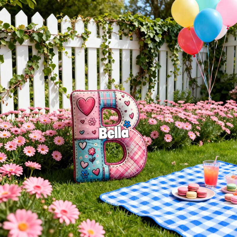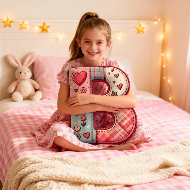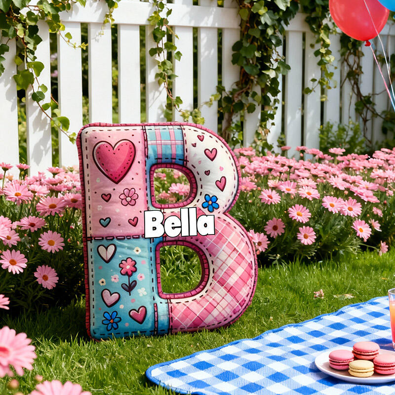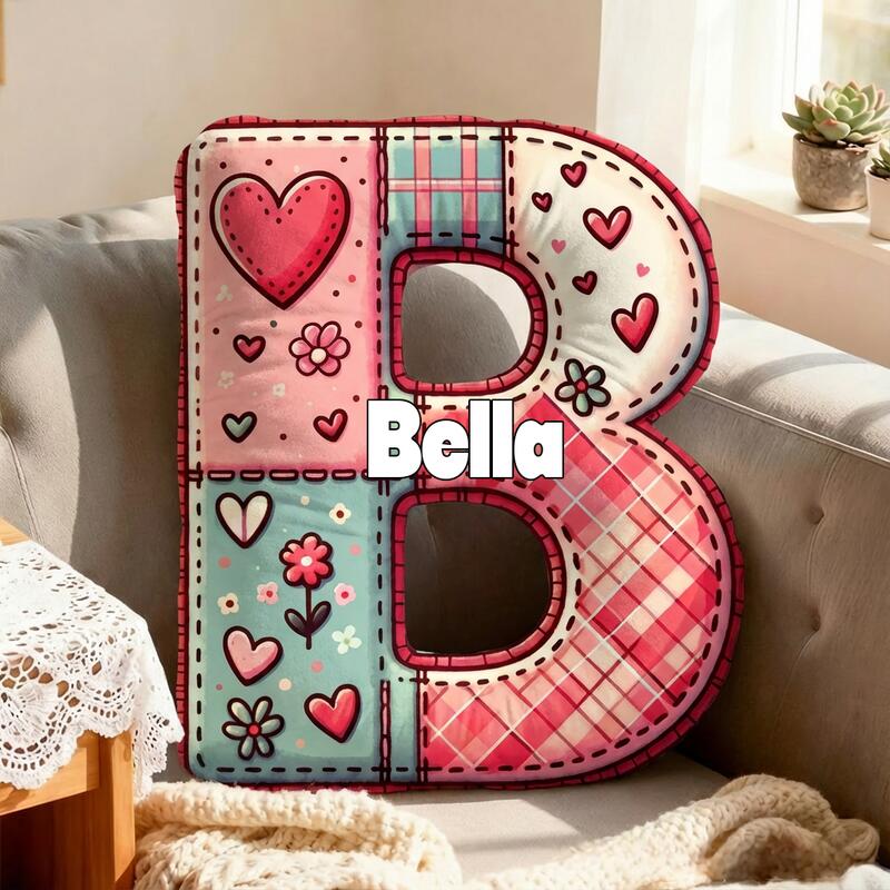Personalized Cartoon Heart Patterned Plaid Letter Pillow Special Gift for Girls