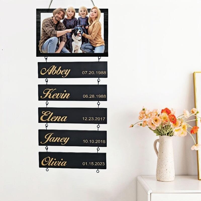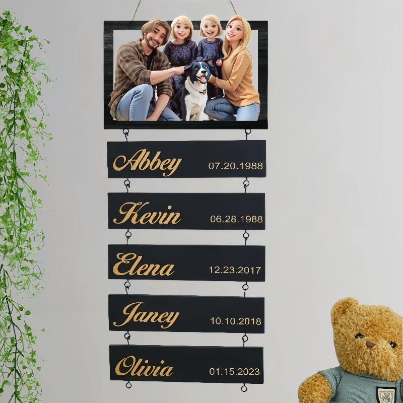 Personalized Cartoon Photo Frame With Family Name Wooden Sign Warm Gift For Loved Ones