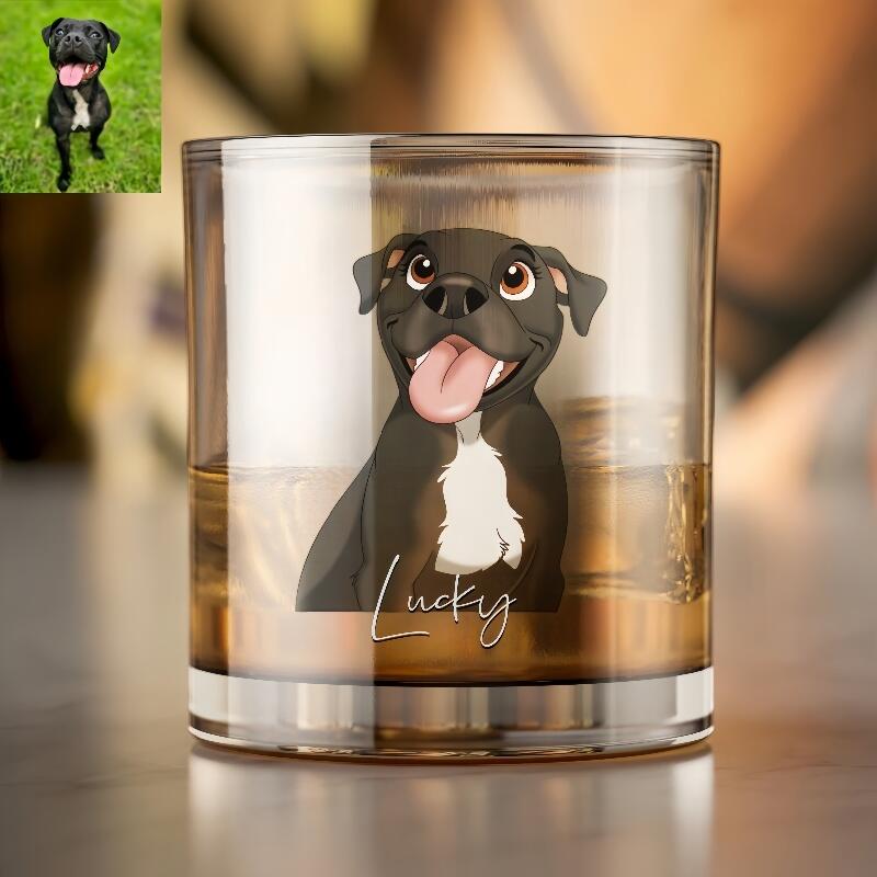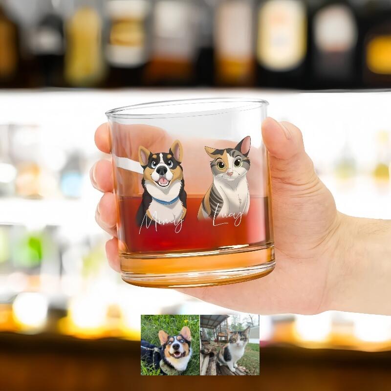 Personalized Cartoon Picture Whiskey Glass with Custom Name Simple Gift for Pet Lover