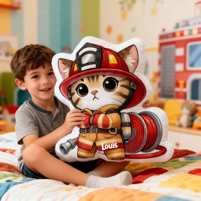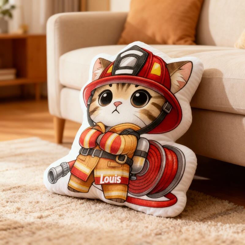 Personalized Cartoon-Shaped Pillow Cute Cat Firefighter Design Gift for Children with Dreams