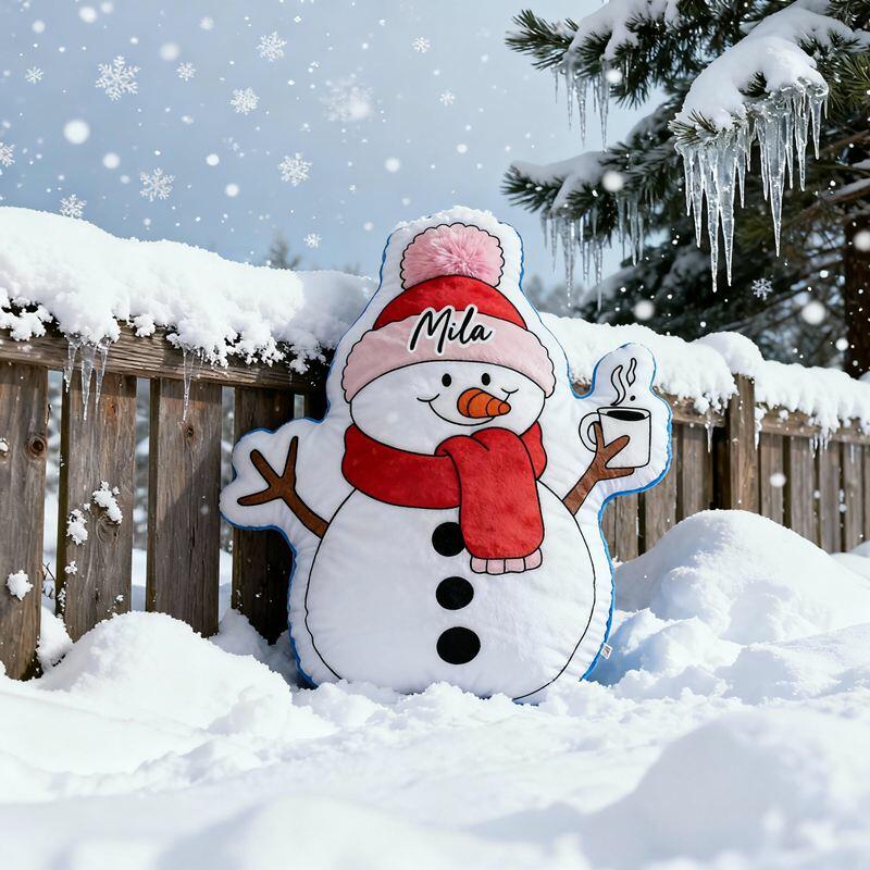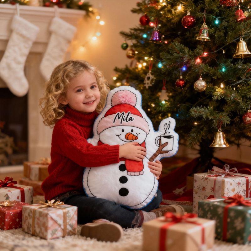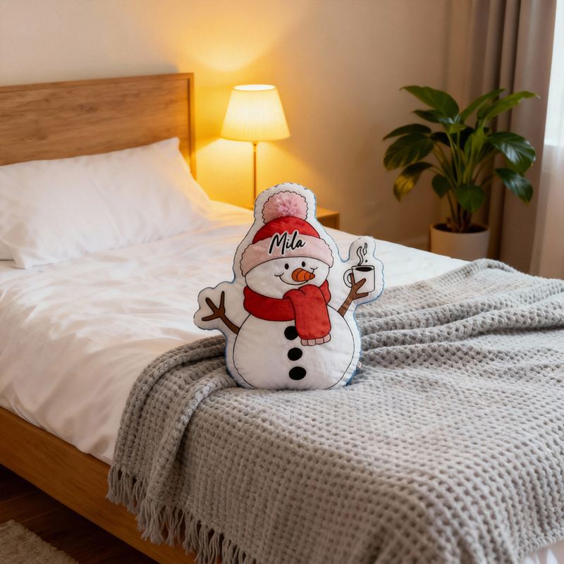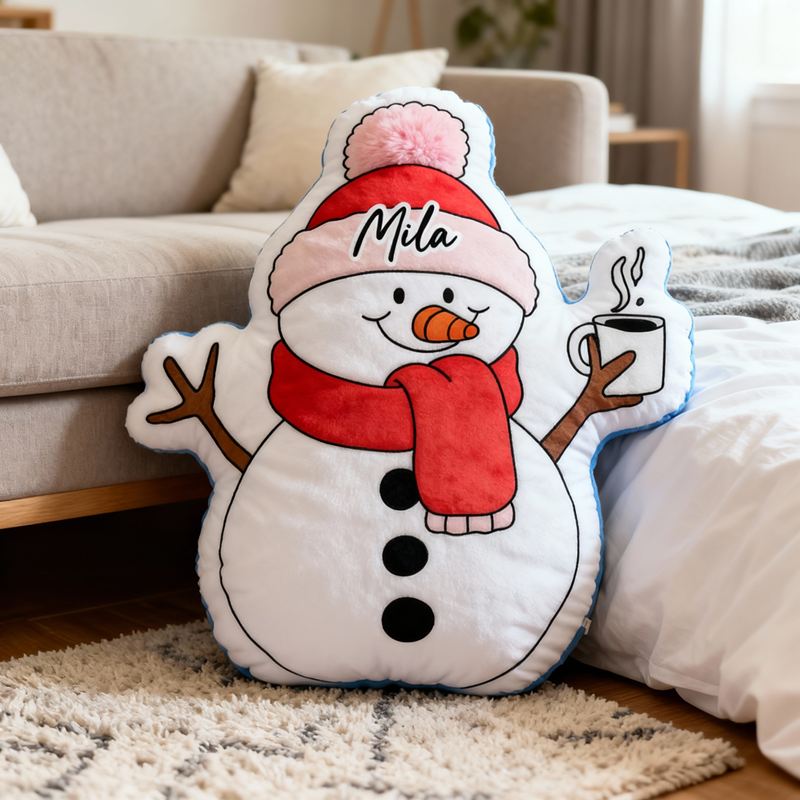Personalized Cartoon-Shaped Pillow Cute Snowman with Scarf Design Christmas Gift for Kids
