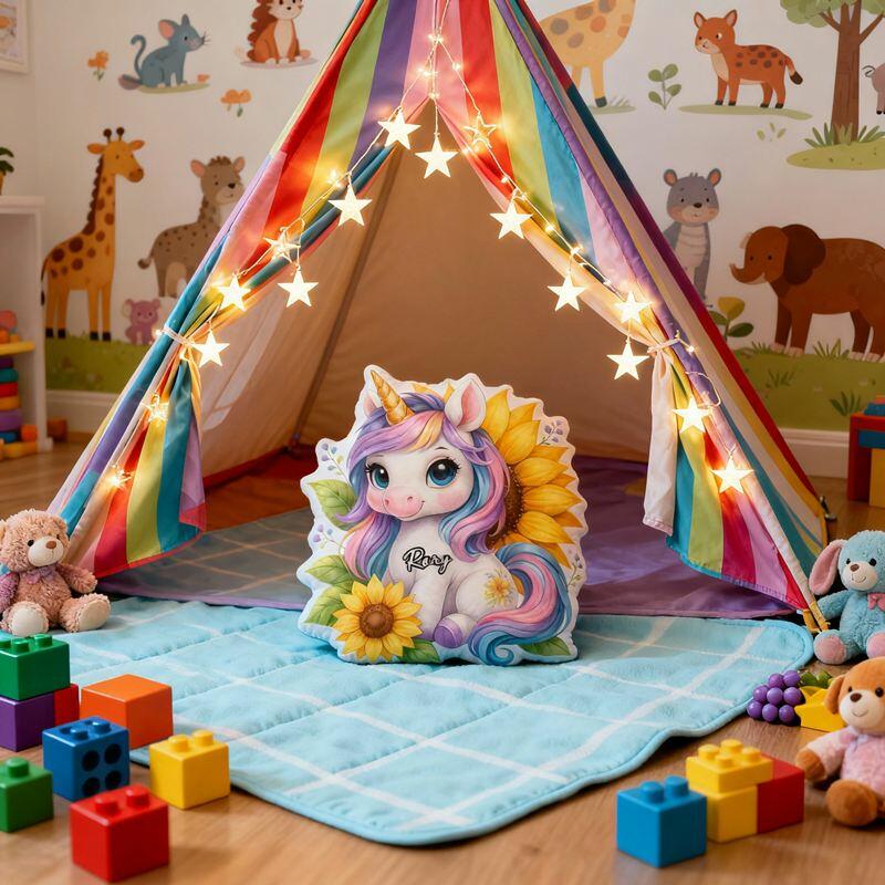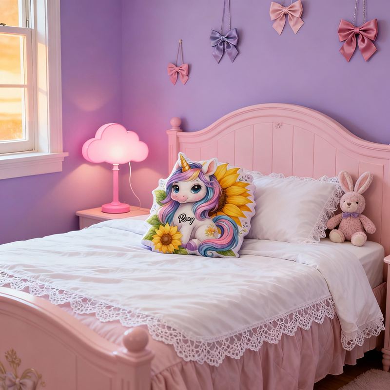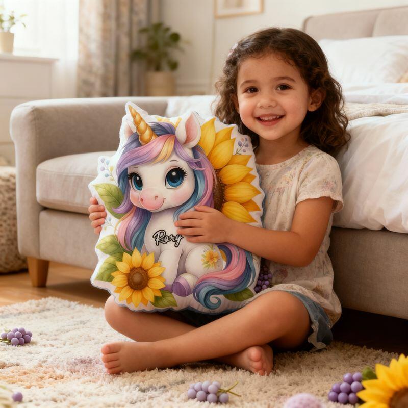 Personalized Cartoon-Shaped Pillow Cute Unicorn and Sunflower Design Gift for Children