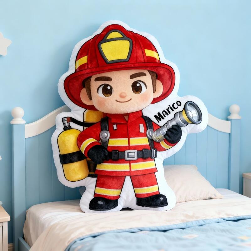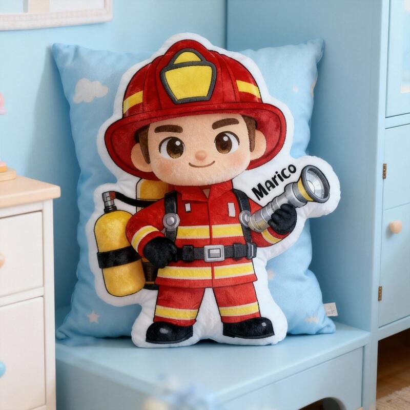 Personalized Cartoon-Shaped Pillow Firefighter Dream Design Perfect Gift for Children