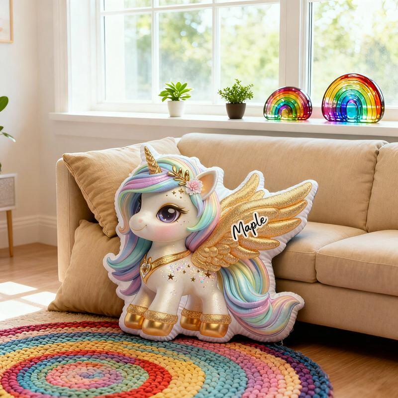 Personalized Cartoon-Shaped Pillow Noble and Elegant Unicorn Pattern Design Gift for Girls