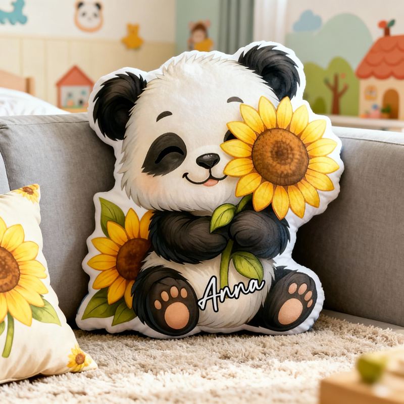Personalized Cartoon-Shaped Pillow Panda Holding A Sunflower Design Cute Gift for Children