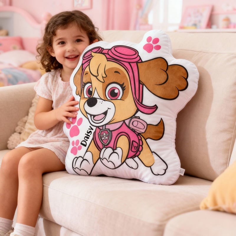 Personalized Cartoon-Shaped Pillow Paw Dog Poodle Design Cute Gift for Children