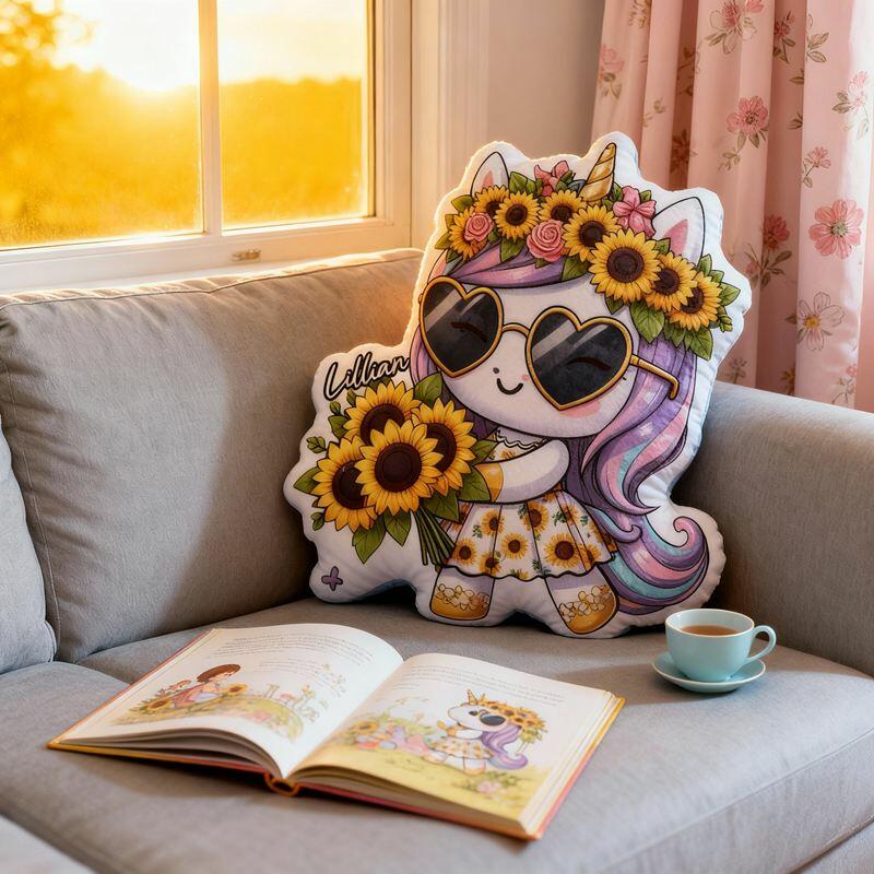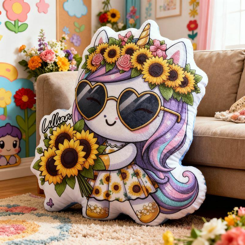 Personalized Cartoon-Shaped Pillow Sunglasses Unicorn and Sunflower Design Cute Gift for Girls