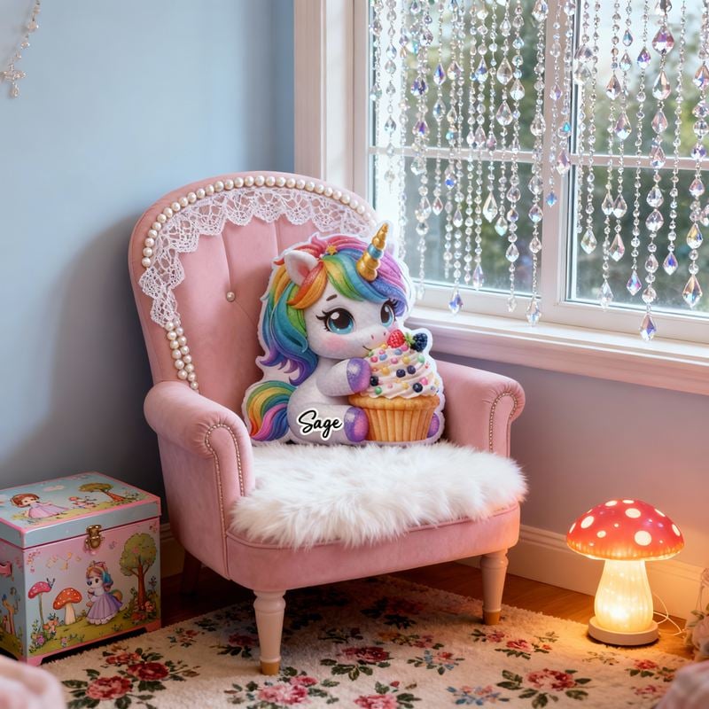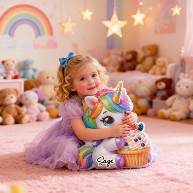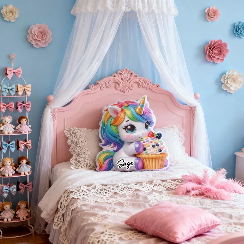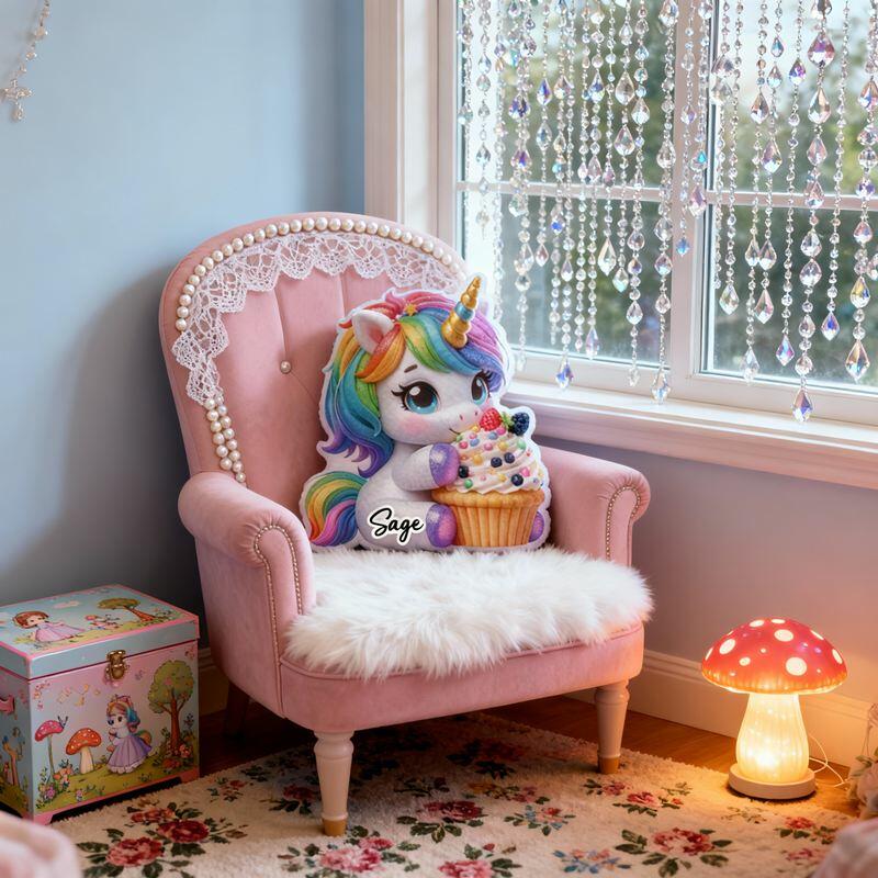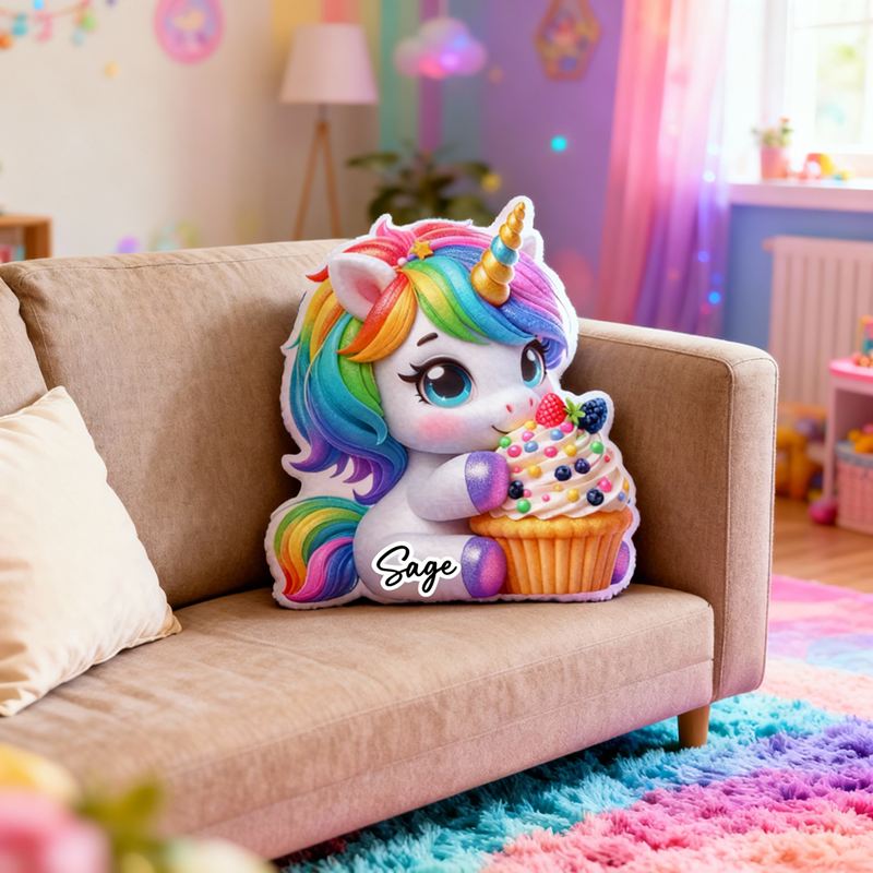 Personalized Cartoon-Shaped Pillow Unicorn and Cupcake Design Attractive Gift for Girls