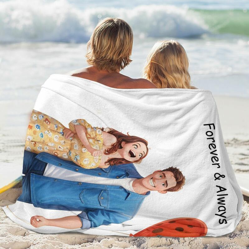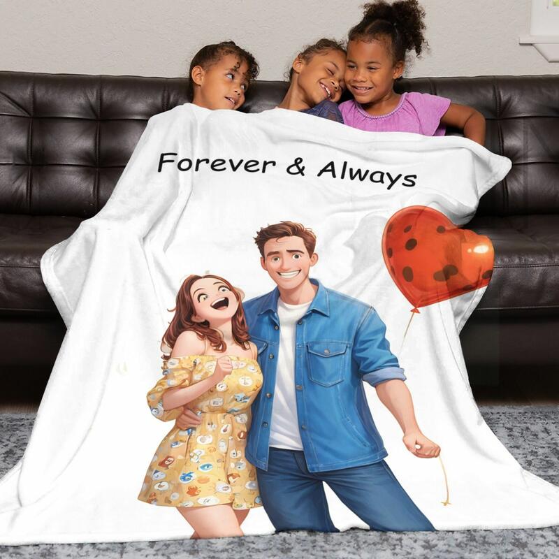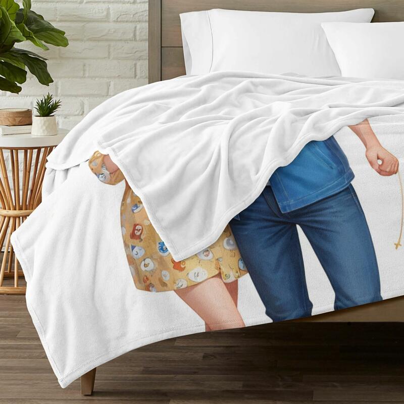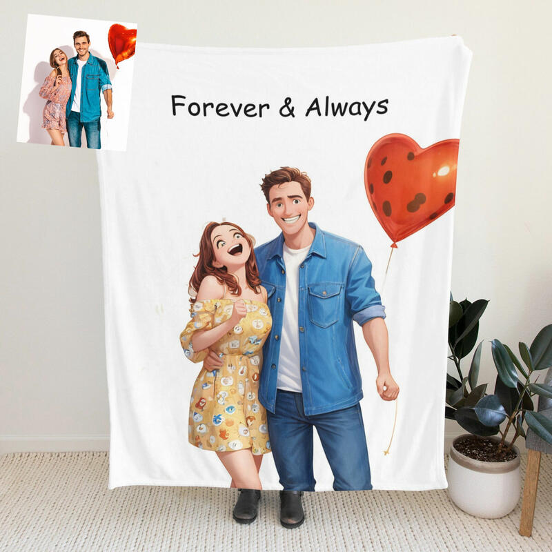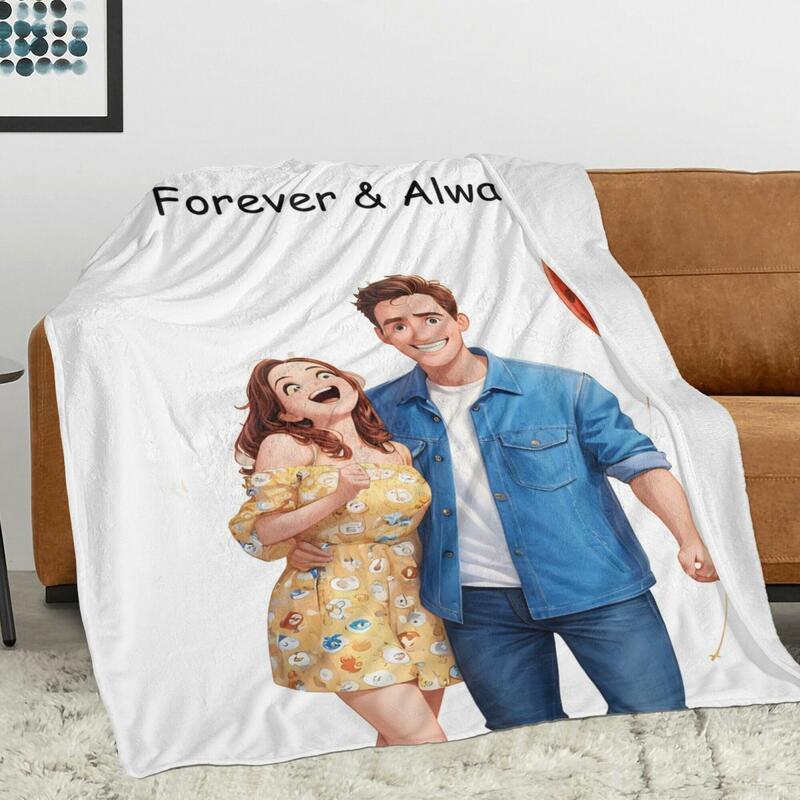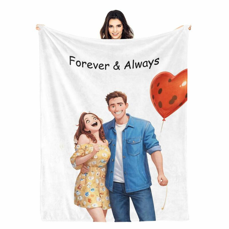 Personalized Cartoon Style Picture Blanket Warm Gift for Valentine's Day