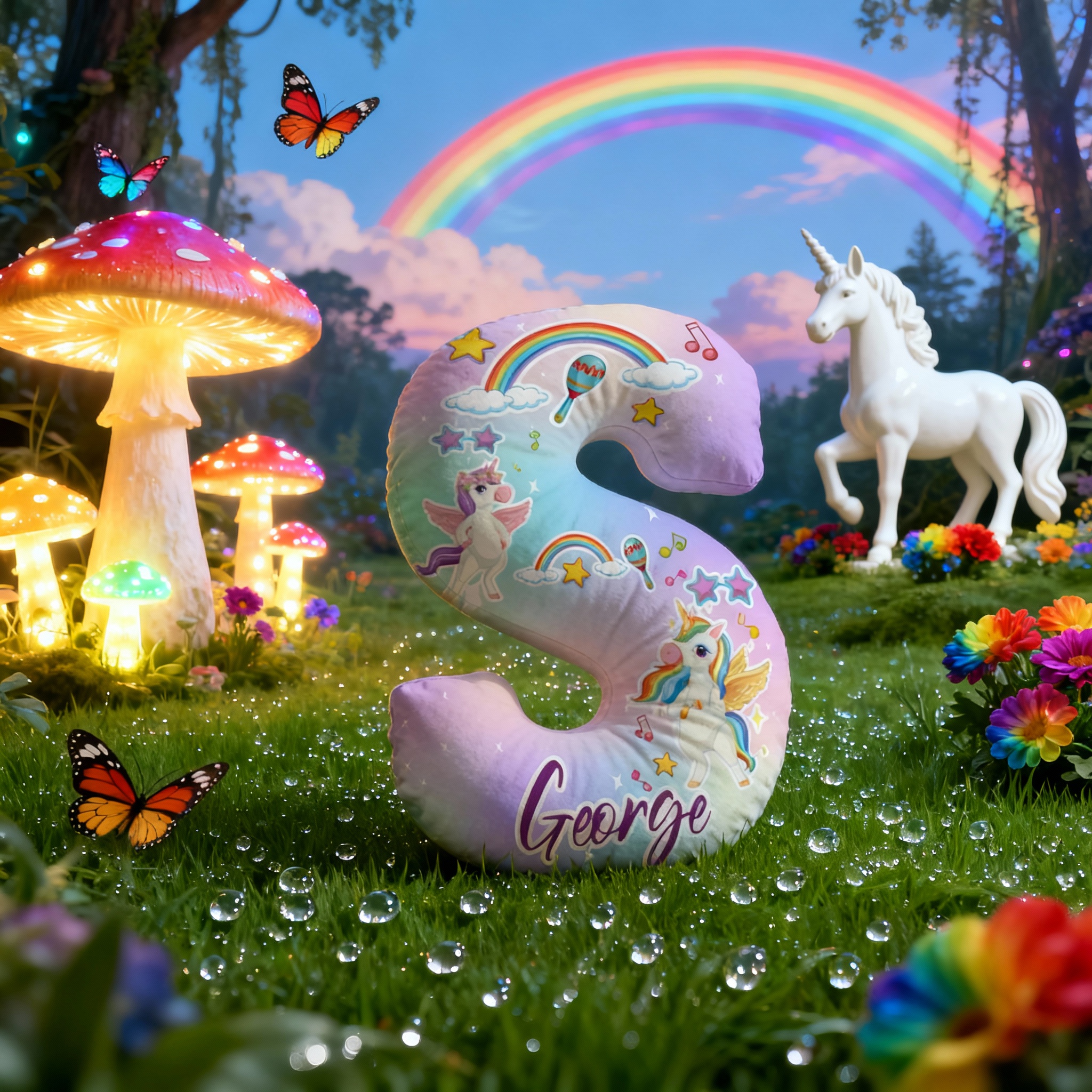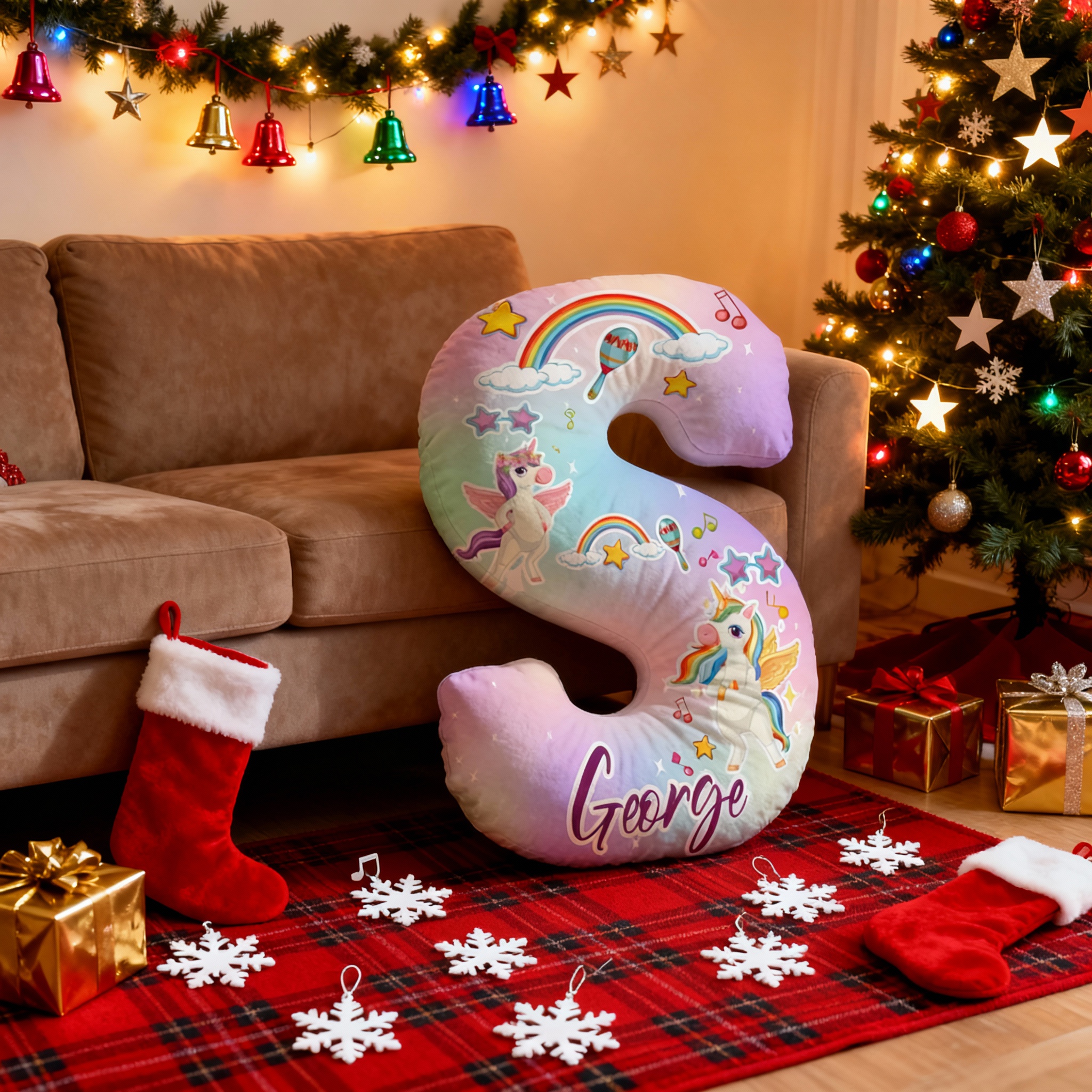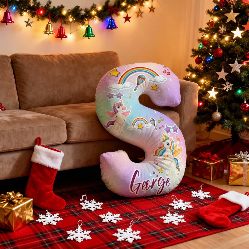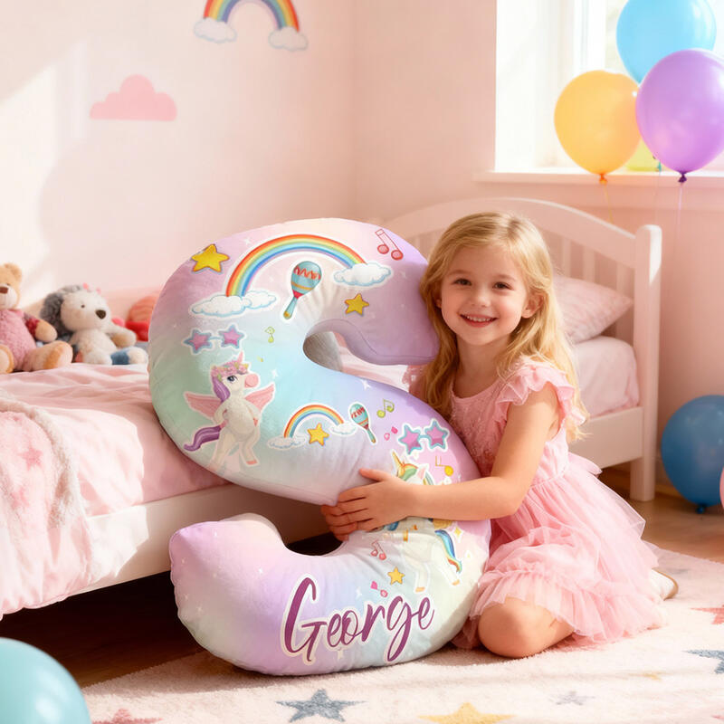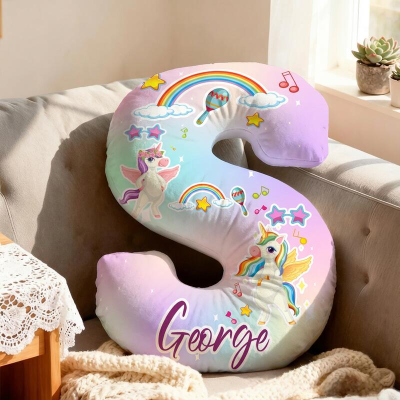 Personalized Cartoon Unicorn Rainbow Pattern Letter Pillow Special Gift for Children