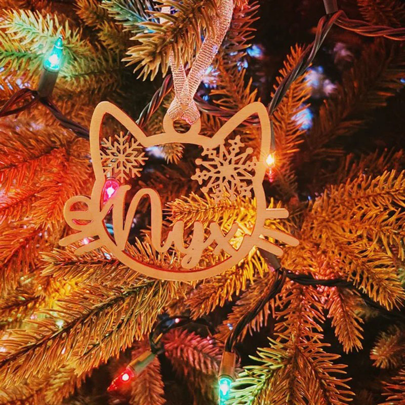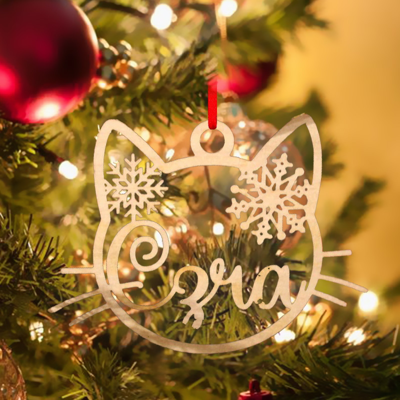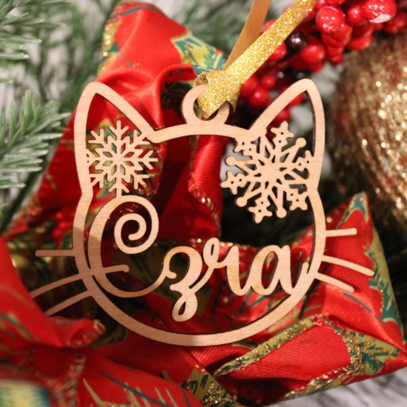 Personalized Cat Custom Name Wooden Snowflake Christmas Tree Decoration
