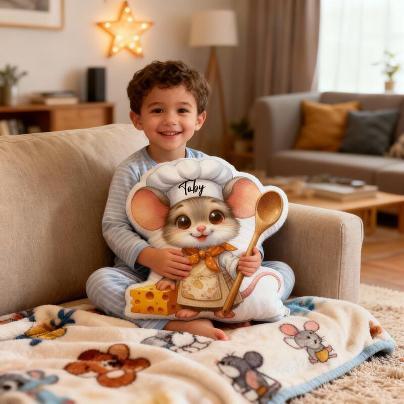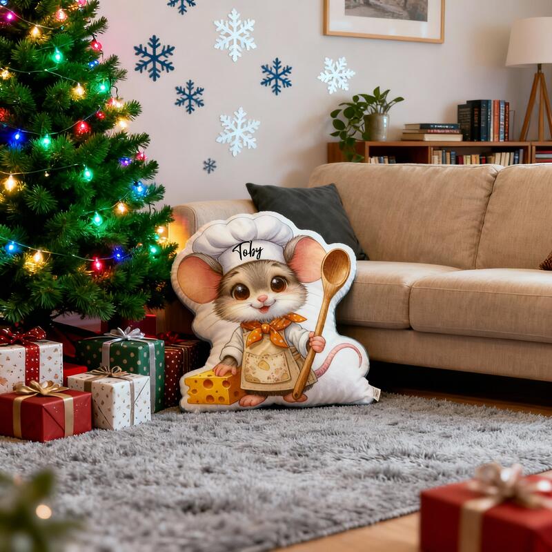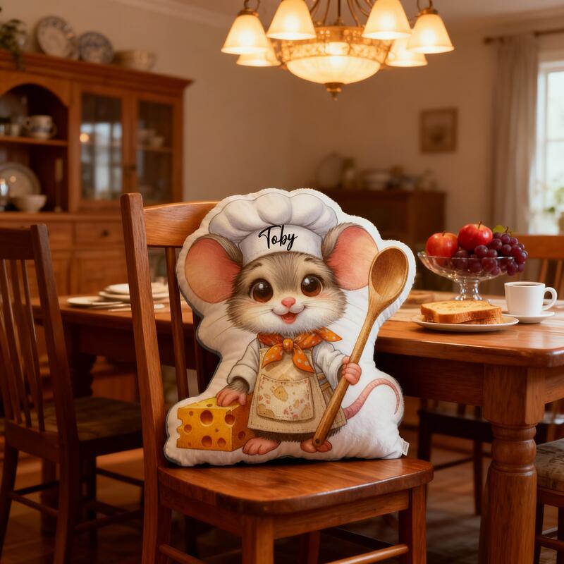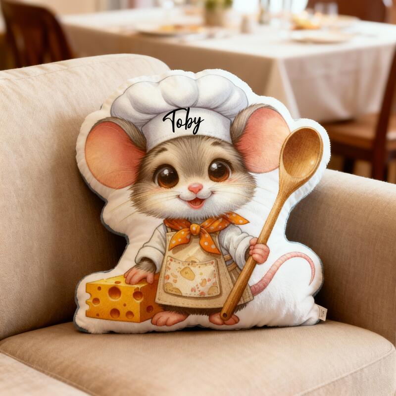 Personalized Chef Mouse Pillow with Custom Name, Cartoon Animal Cushion for Christmas
