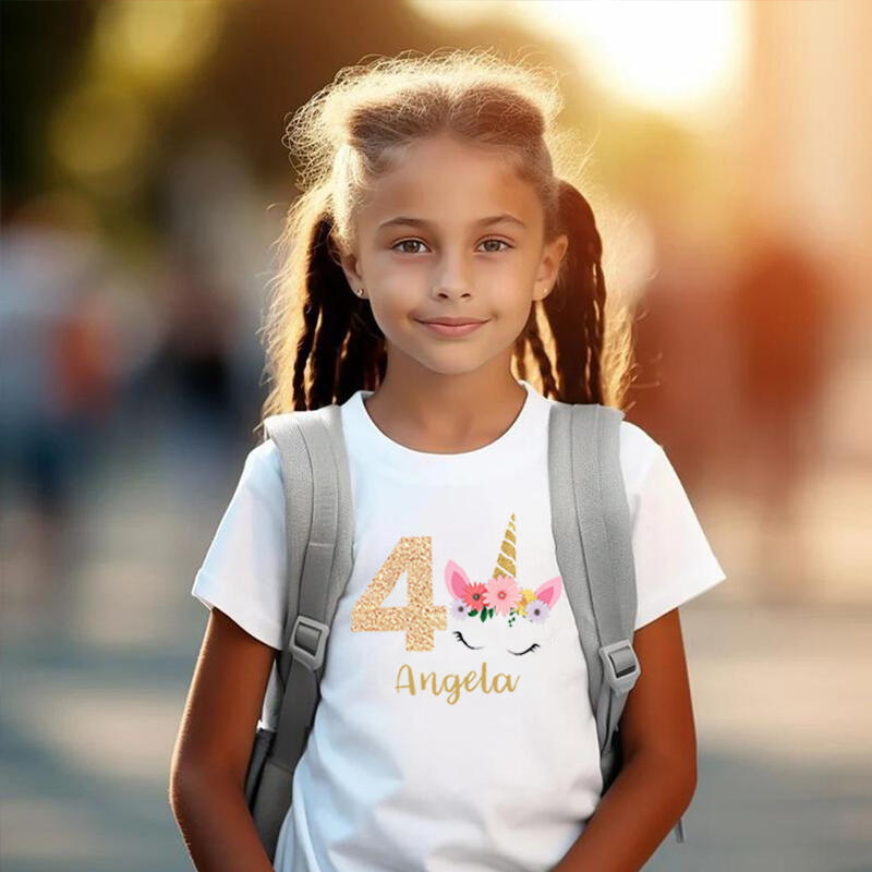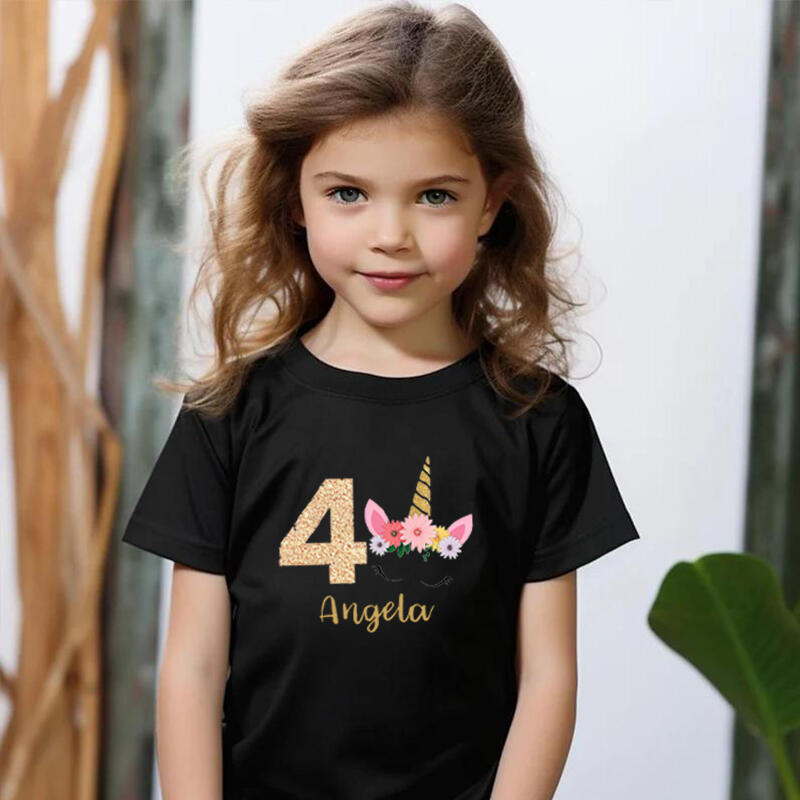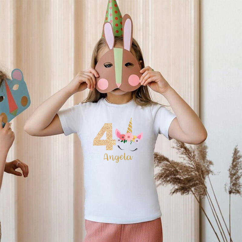 Personalized Children's T-Shirt Custom Name And Age With Unicorn Pattern Cute Gift For Girls
