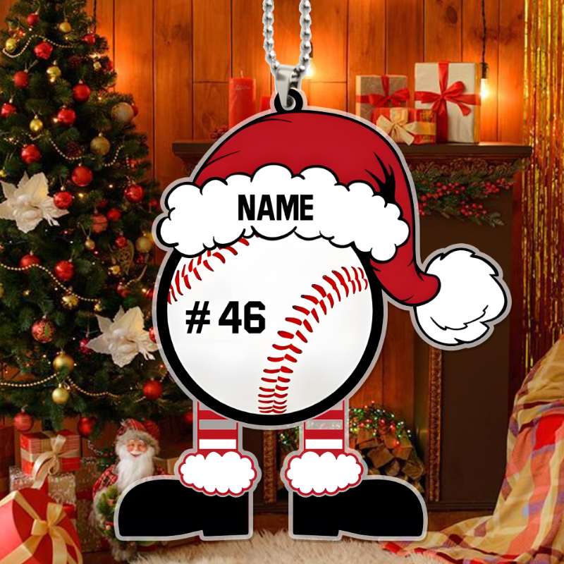 Personalized Christmas Decoration Custom Name with Cute Baseball Pattern Funny Gift for Baseball Lover