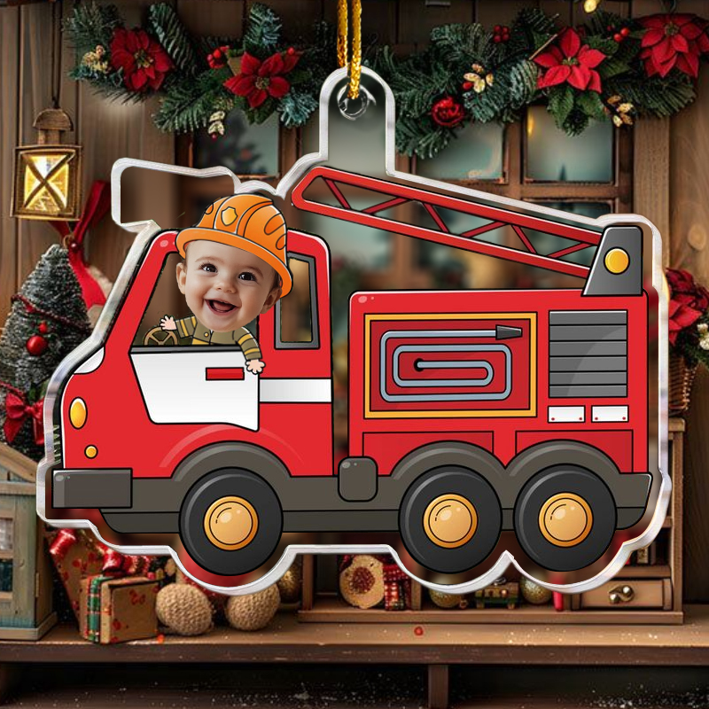 Personalized Christmas Decoration Custom Picture with Fire Truck Pattern Creative Gift for Kids