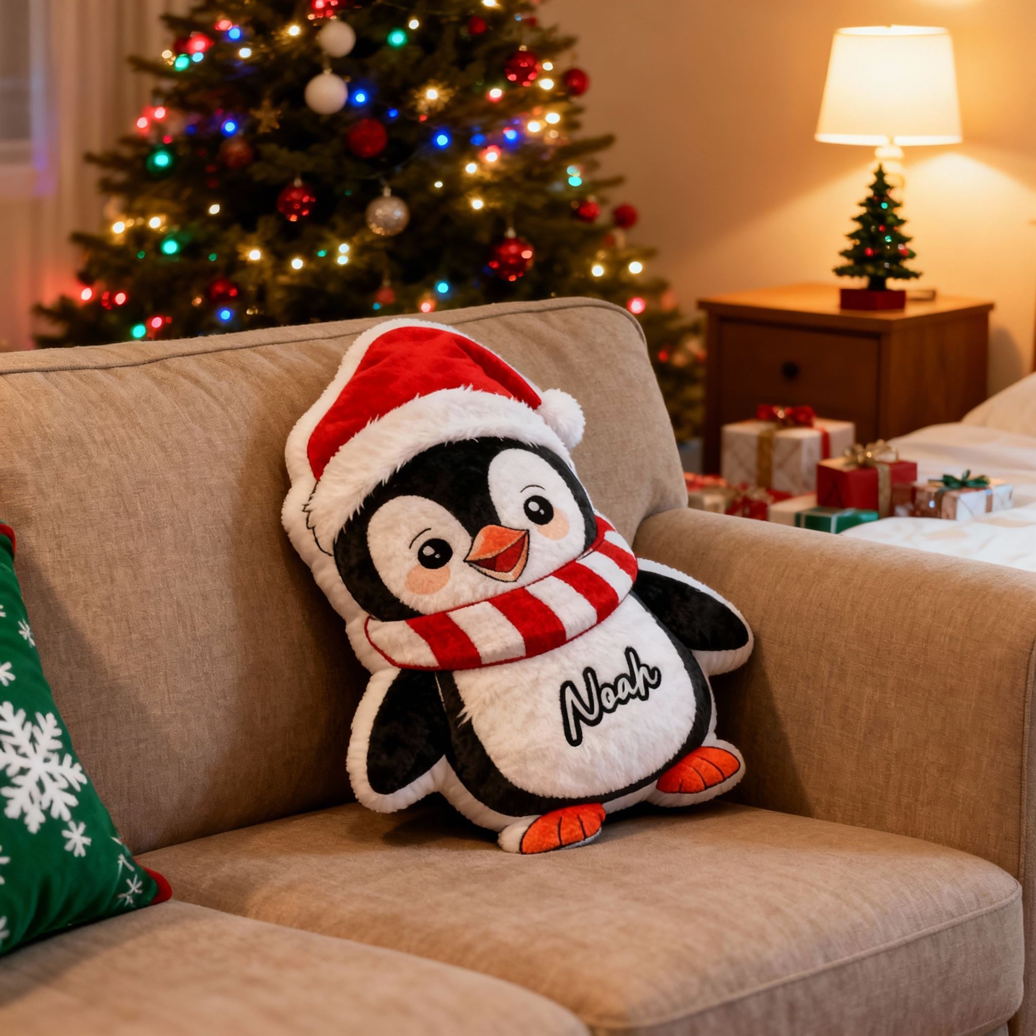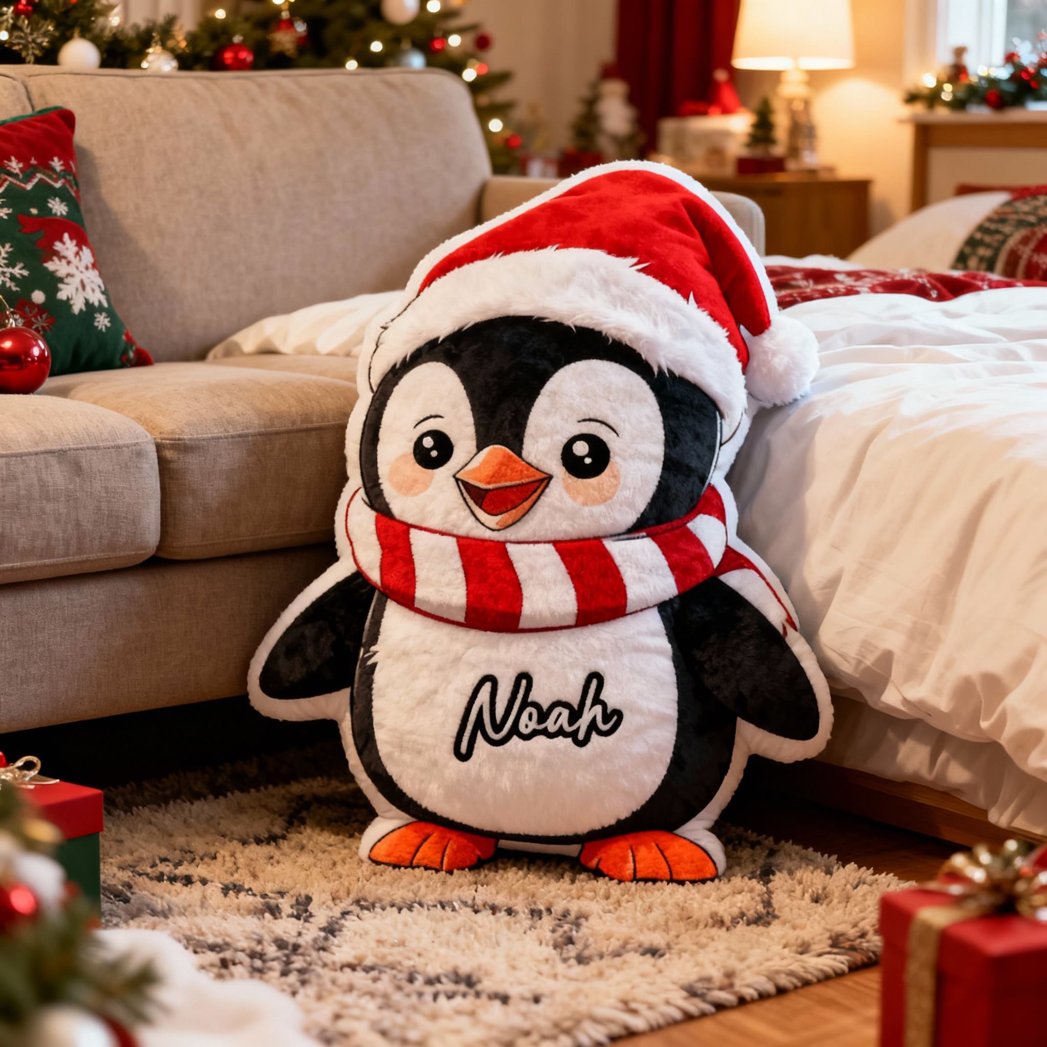 Personalized Christmas Penguin Pillows with Customizable Names Cute Christmas Gifts for Children