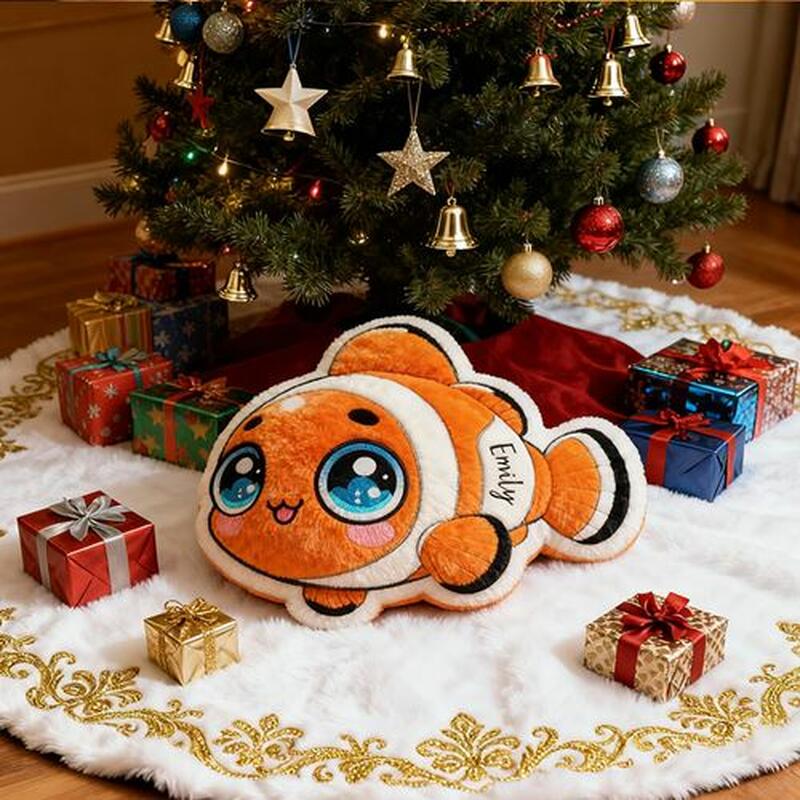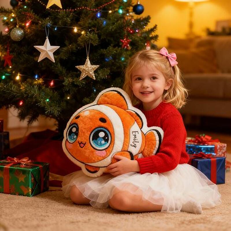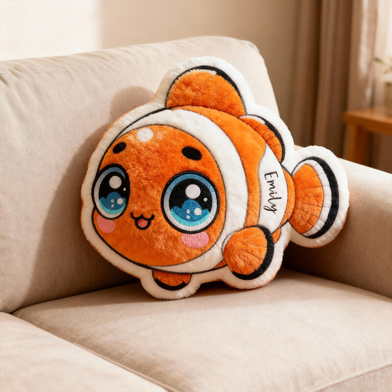 Personalized Clownfish Pillow Custom Name Cute Fish Pillow Christmas Gift for Children