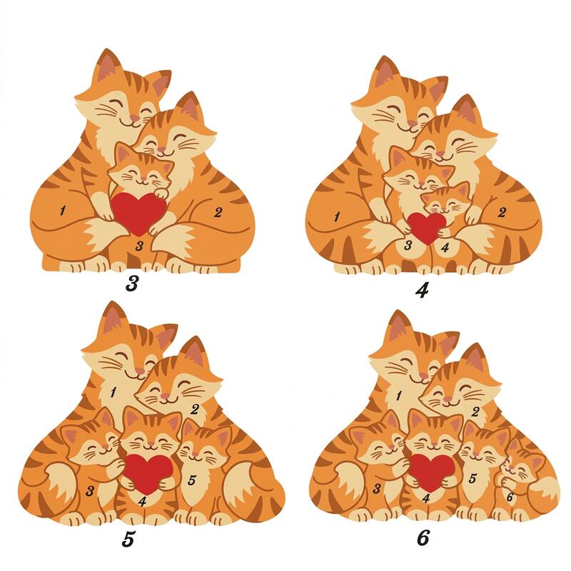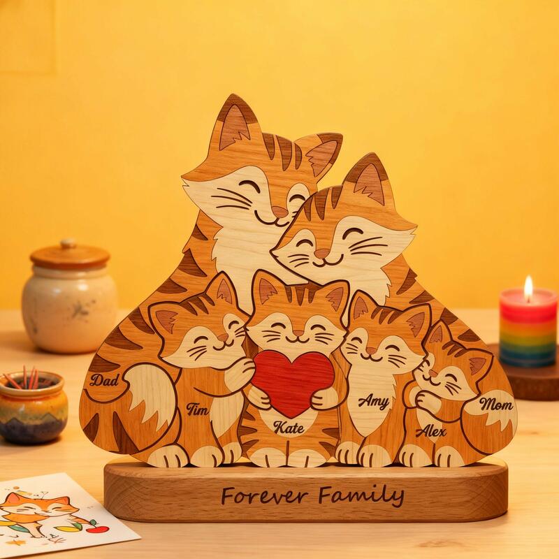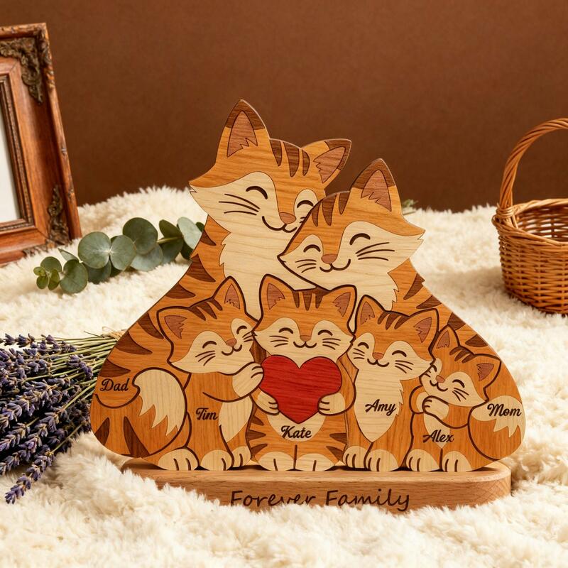Nothing can compare to the serene and warm familial affection within a family. This personalized cat family wooden jigsaw puzzle perfectly captures this bond of love. Each gentle curve and shared sentiment in it embodies this emotion. It is not just a piece of decoration, but a tangible symbol of home itself. It carries love, laughter, and reunion, making the house a true home. From loving parents to lively little ones, each cat shape is accompanied by a name, telling your unique story, transforming ordinary wood into an extraordinary symbol, representing your eternal family.