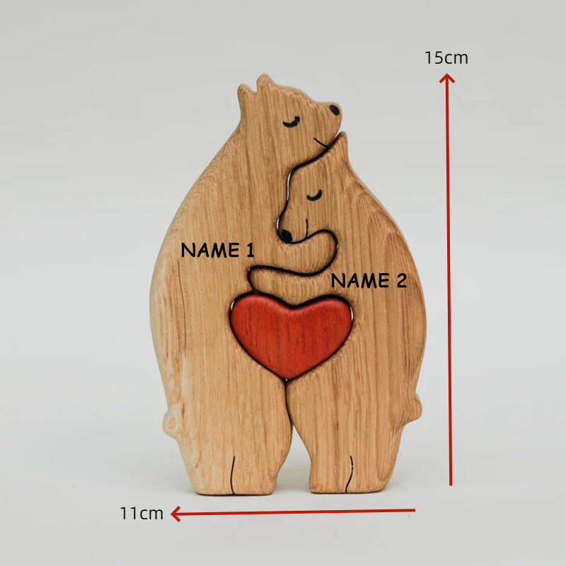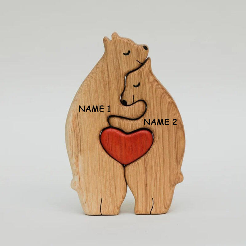 Personalized Couple Bear Wooden Puzzle Customized Names Valentine's Day Gift