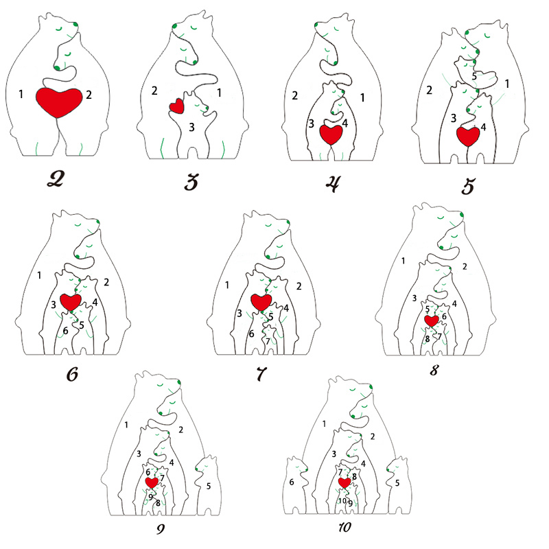 Each of our wooden puzzles is made from high-quality wood and is carefully designed and crafted. We pay attention to every detail to ensure each puzzle is of high quality and durability. One of the features of our wooden puzzles is the ability to customize them with family members' names. You can tell us the names of family members and we will use them to engrave the corresponding places on each puzzle piece. In this way, when you put the puzzle together, each family member's name will appear on the puzzle, showing the warmth of the family and making everyone feel belonging and cared for. We have designed a variety of animal shapes, such as bears, rabbits, kittens, etc. Each animal is carefully carved and painted, lifelike, full of childlike fun and cuteness. These animal-shaped puzzles will bring you a pleasant puzzle experience, while also adding to the decorative nature of the product, making it a beautiful addition to your home.