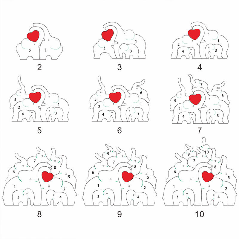 Each of our wooden puzzles is made from high-quality wood and is carefully designed and crafted. We pay attention to every detail to ensure each puzzle is of high quality and durability. One of the features of our wooden puzzles is the ability to customize them with family members' names. You can tell us the names of family members and we will use them to engrave the corresponding places on each puzzle piece. In this way, when you put the puzzle together, each family member's name will appear on the puzzle, showing the warmth of the family and making everyone feel belonging and cared for. We have designed a variety of animal shapes, such as bears, rabbits, kittens, etc. Each animal is carefully carved and painted, lifelike, full of childlike fun and cuteness. These animal-shaped puzzles will bring you a pleasant puzzle experience, while also adding to the decorative nature of the product, making it a beautiful addition to your home.