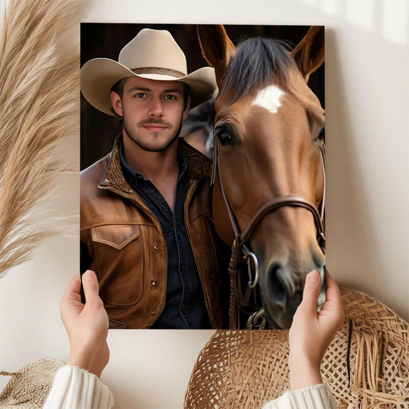 Personalized Cowboy Portraits with Custom Face Swap Stylish Present for Daddy