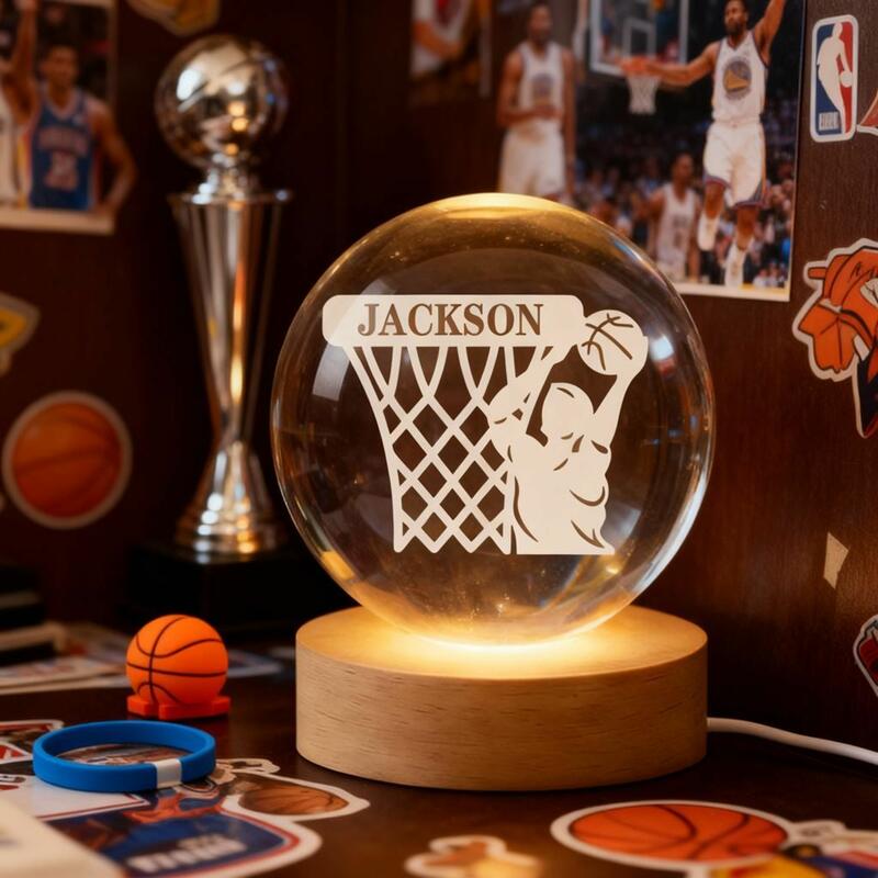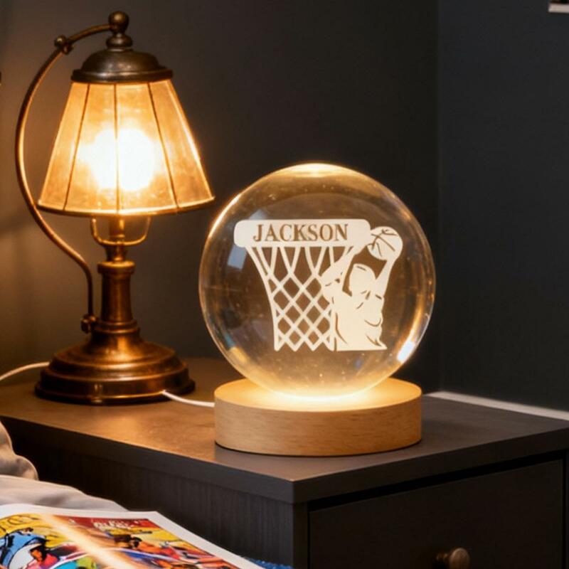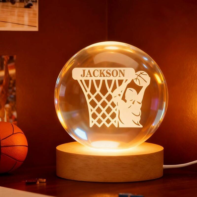 Personalized Crystal Ball Lamp with Basketball Theme Engraved with Name Creative Gift for Kids